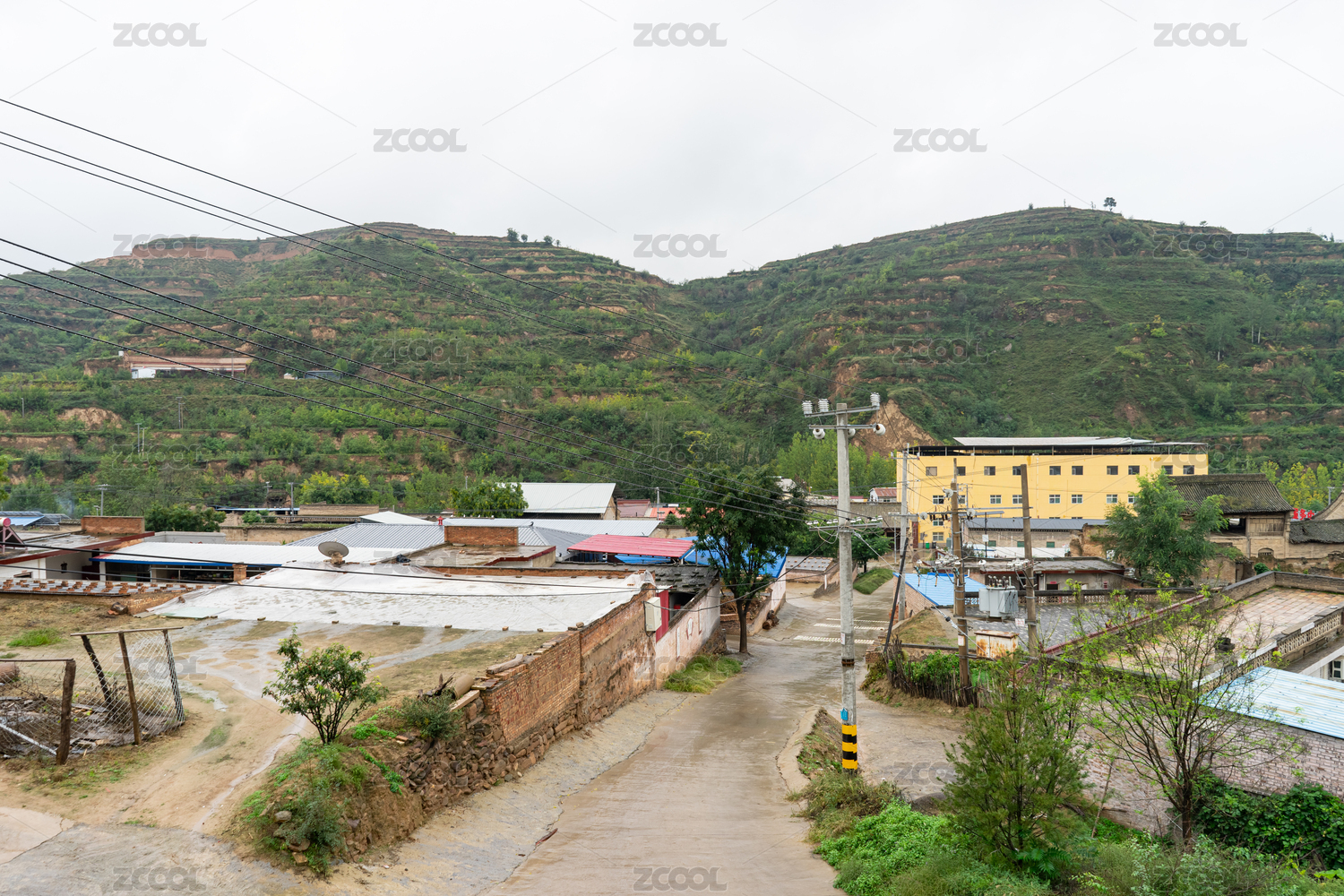 西北黄土高坡乡村风格房屋建筑,水泥地乡村