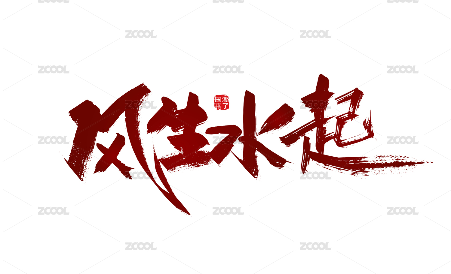 国潮风格艺术字体纯手写毛笔字风生水起