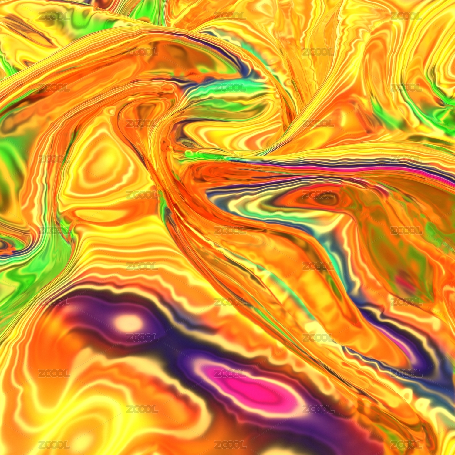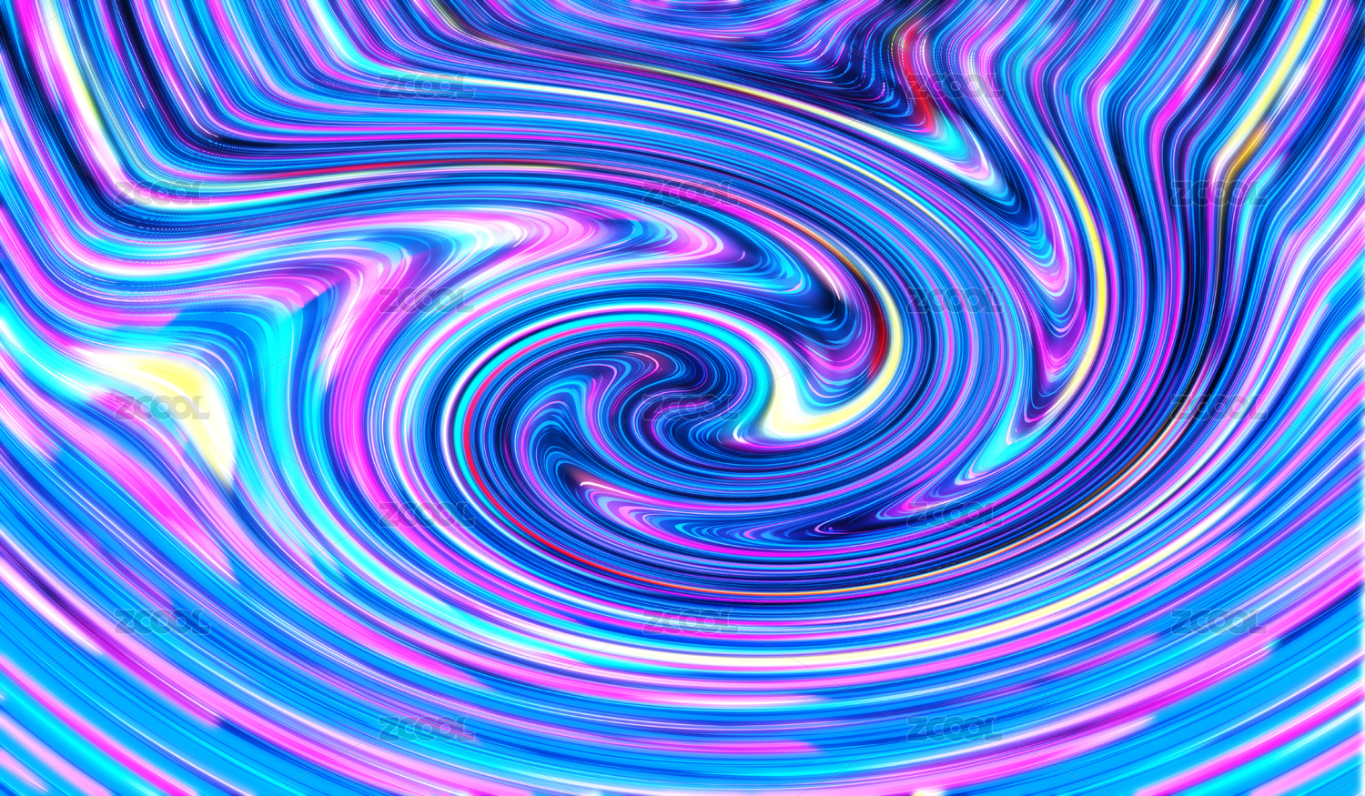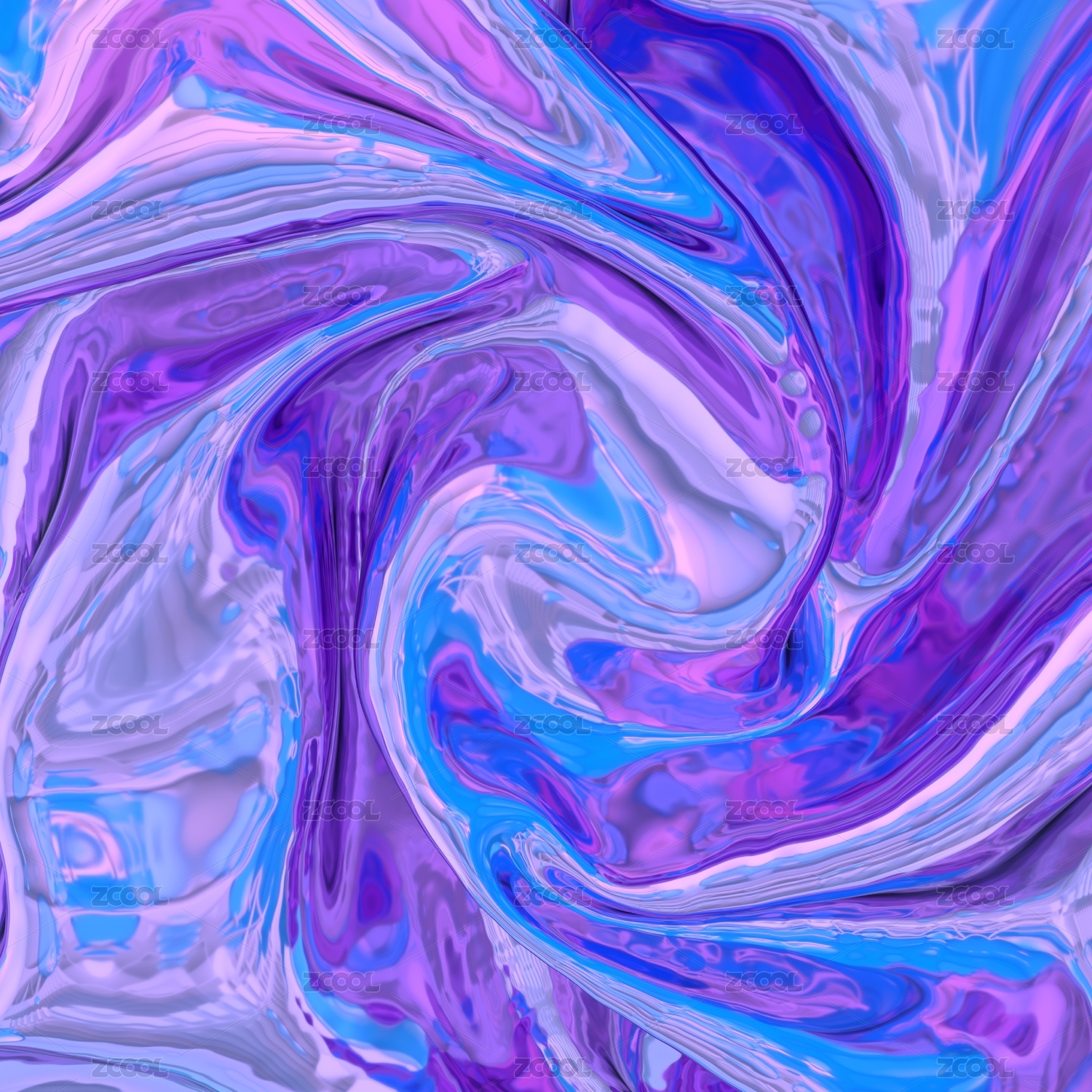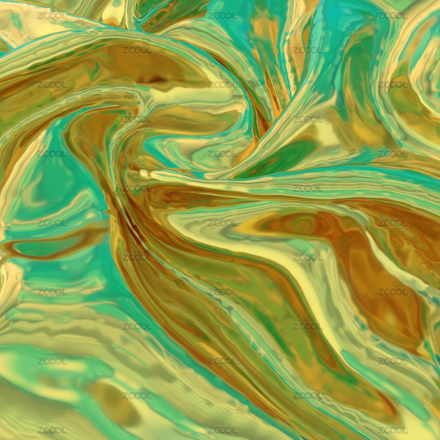 全息金属箔彩虹波、流动液体分形抽象纹理。