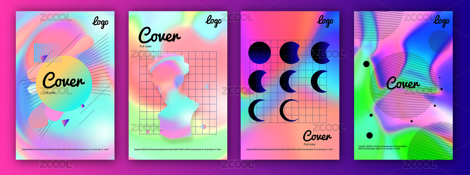 彩色线条、全息金属箔彩虹波抽象纹理背景。