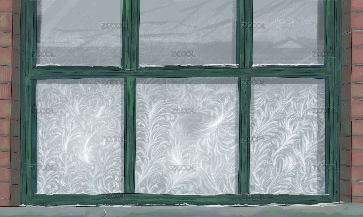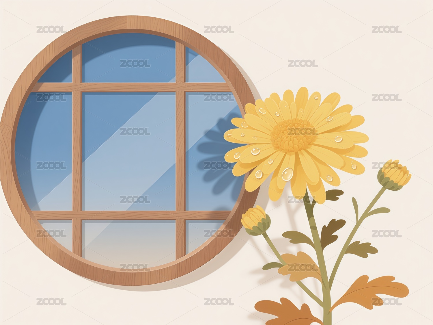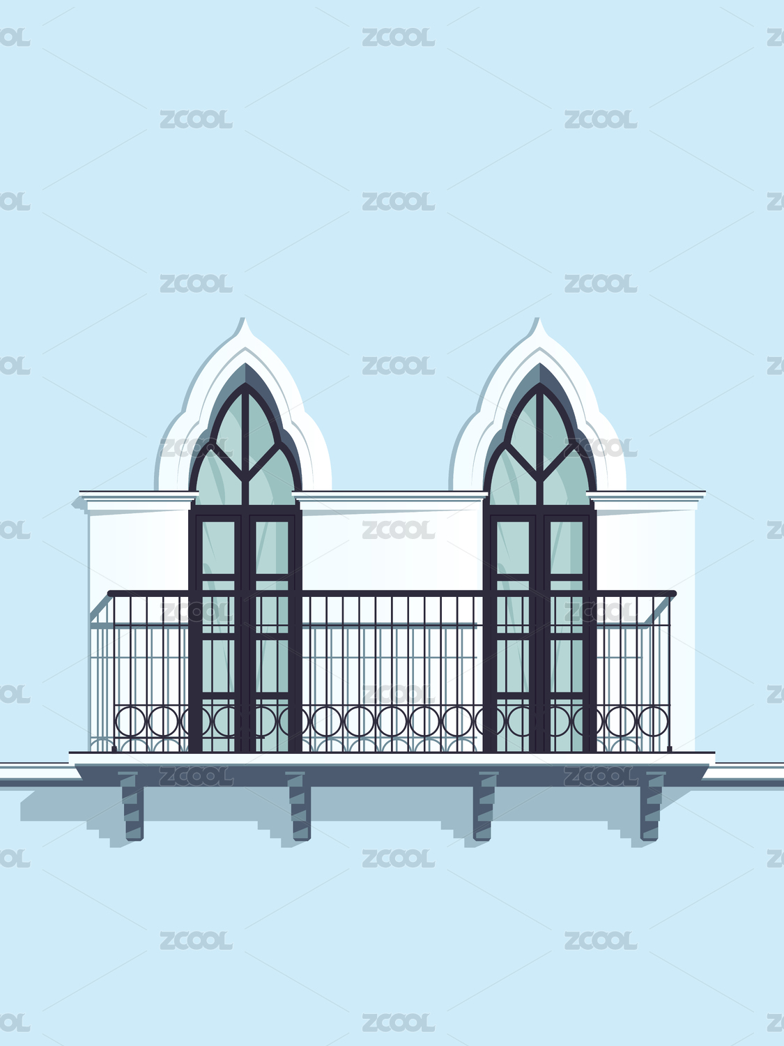 欧式蓝色阳台简约白色窗户矢量插画海报设计