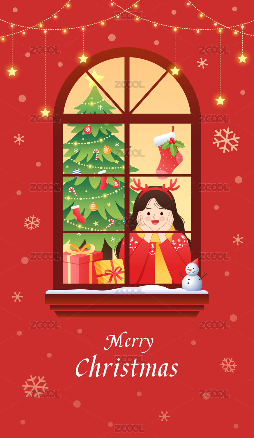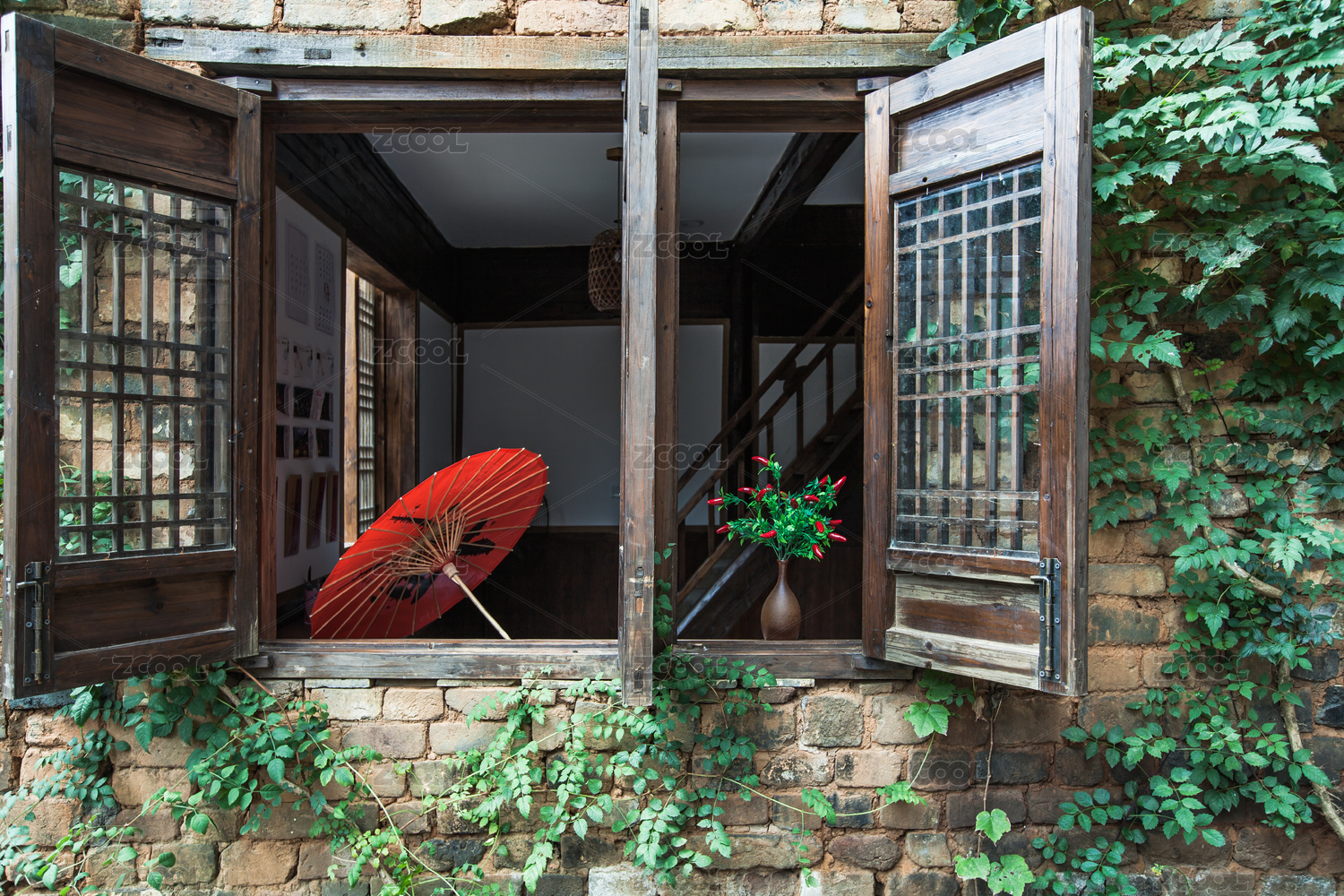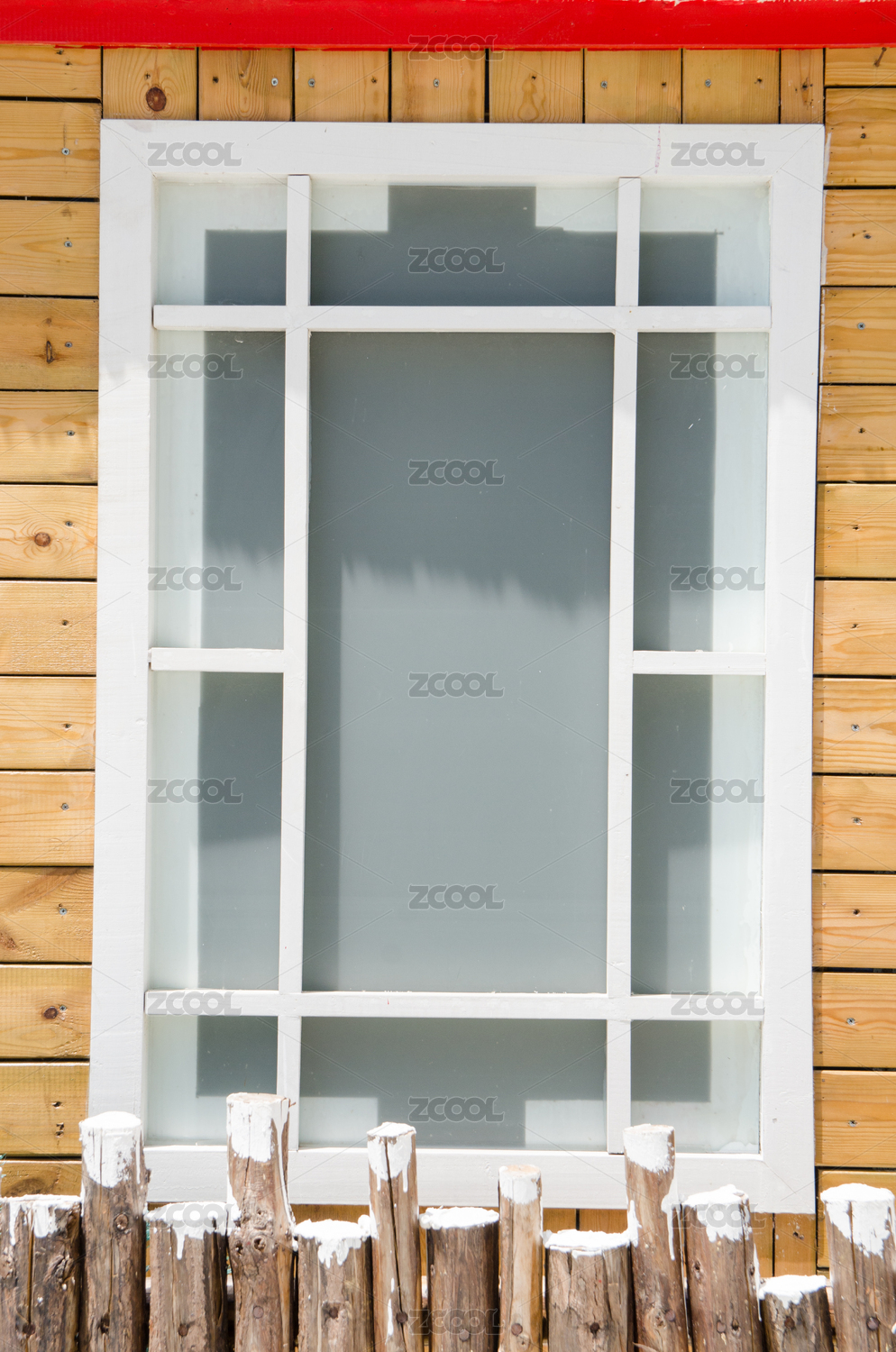 欧式蓝色阳台简约白色窗户矢量插画海报设计