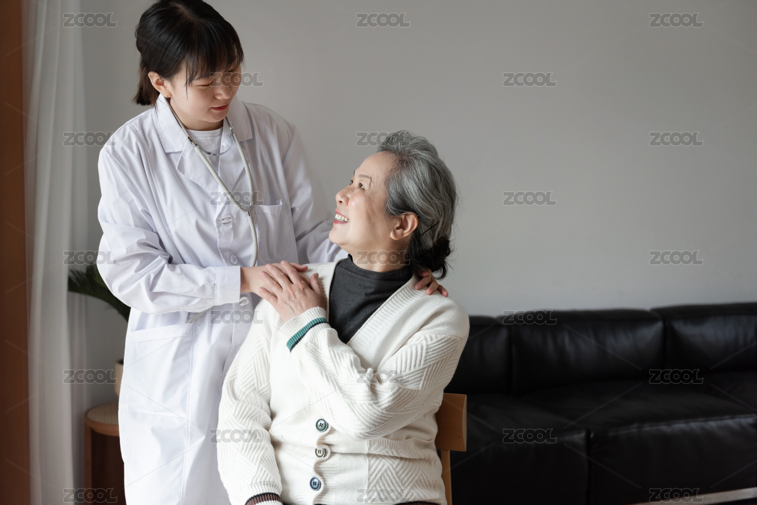 老年人夫妻在家中沙发上相拥 可爱风格重阳节老年人惬意生活插画