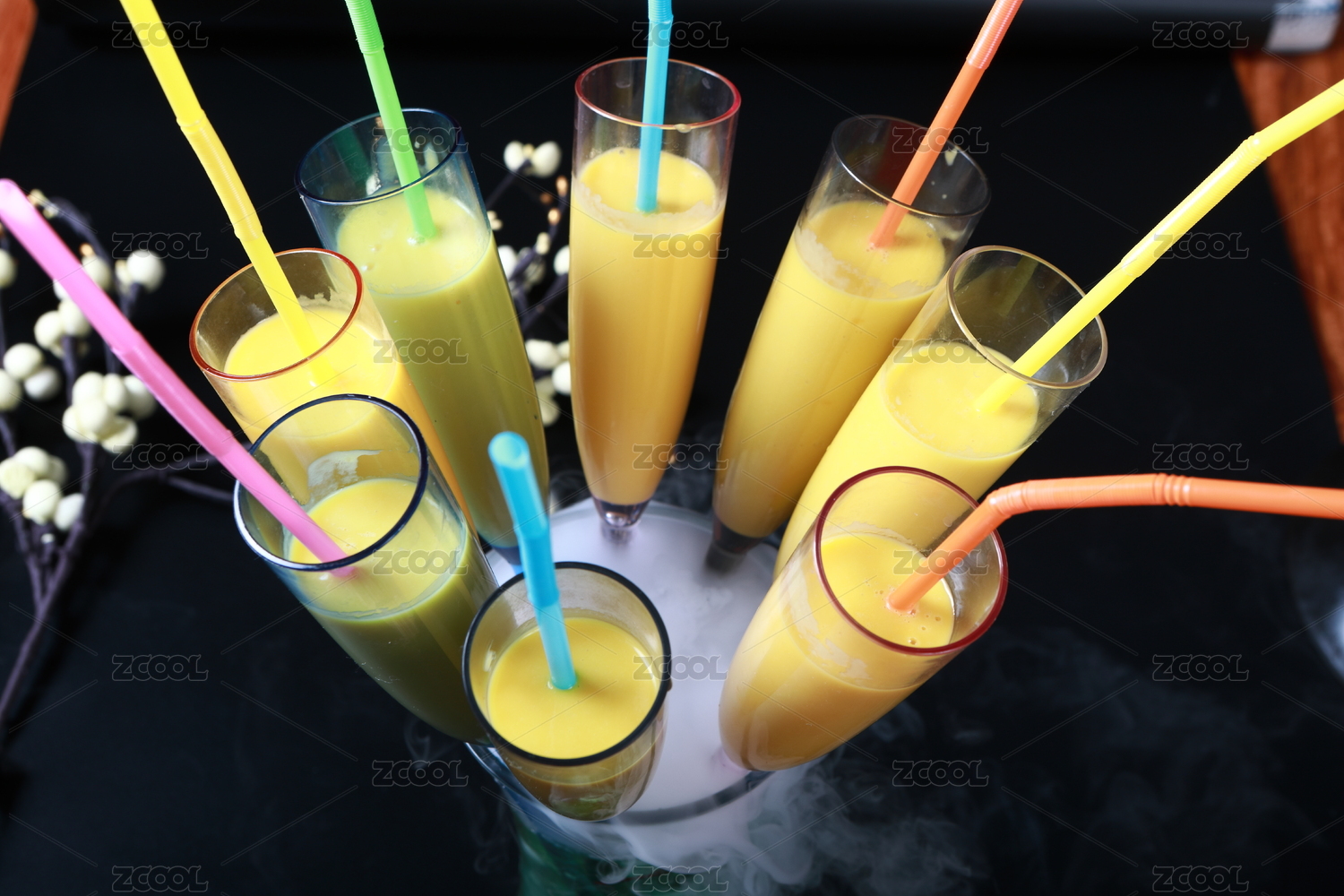 玻璃杯 芒果鲜榨果汁 切开的芒果