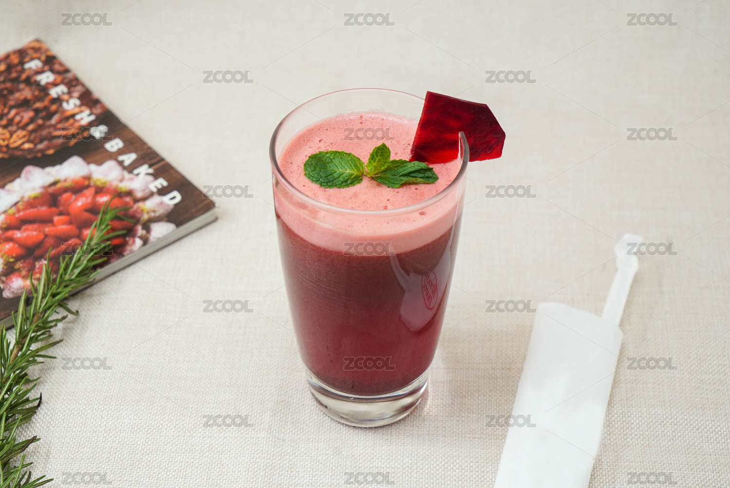 圆形玻璃杯 红橙子鲜榨果汁 薄荷叶