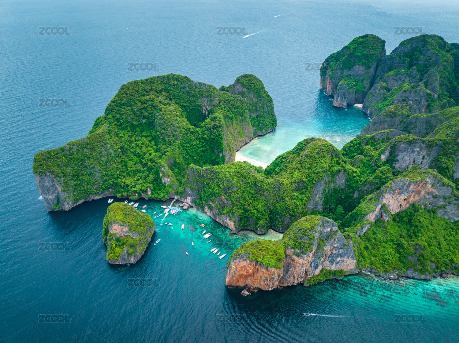 泰国 皮皮岛 蔚蓝色的海水上面漂浮着小船
