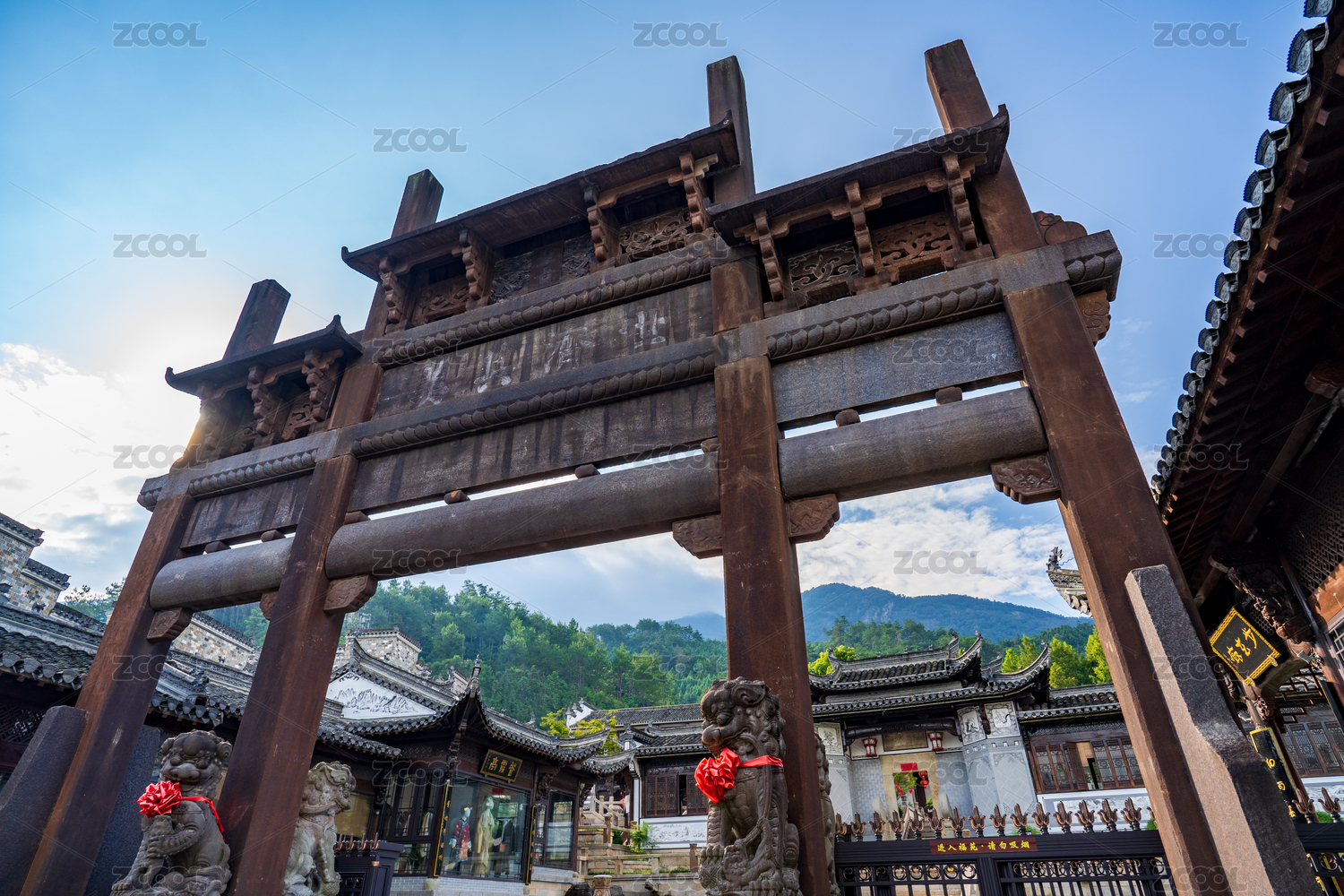 安徽池州青阳县九华山佛教建筑古拜经台俯拍