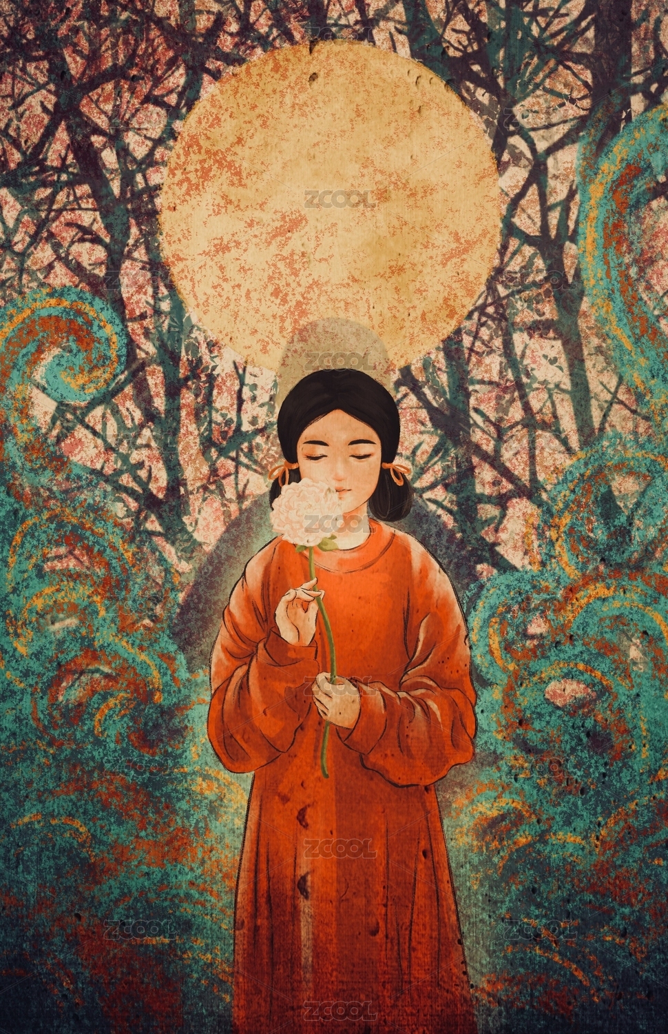 山楂陈皮麦芽茯苓白术茶养生茶国风插画