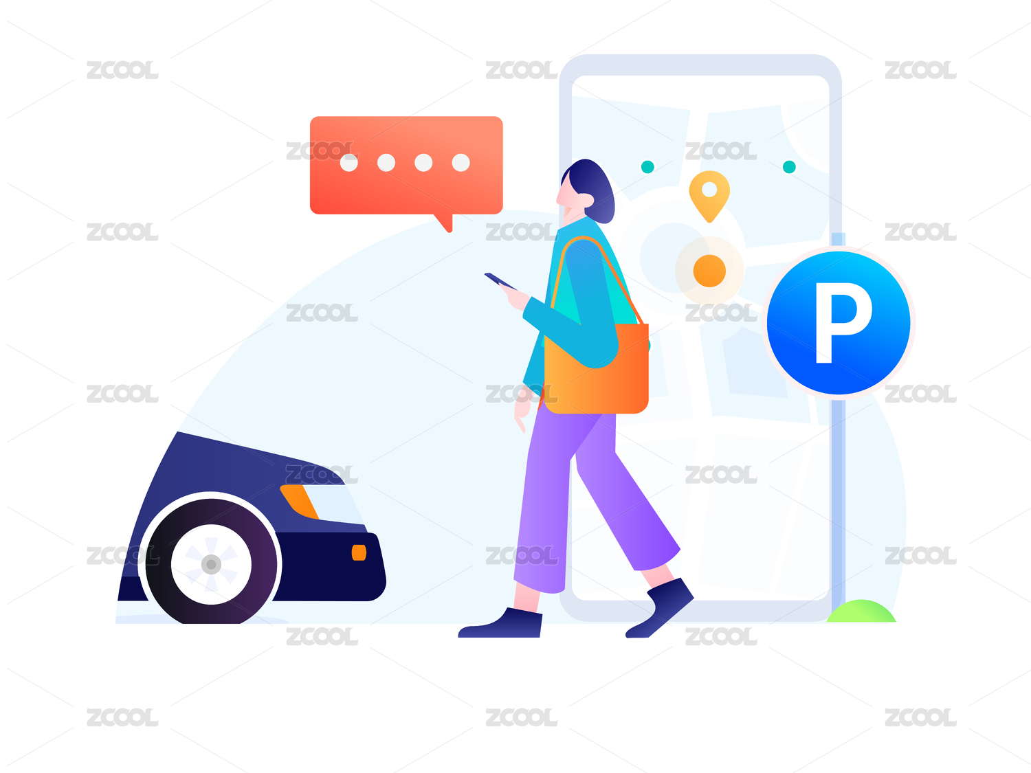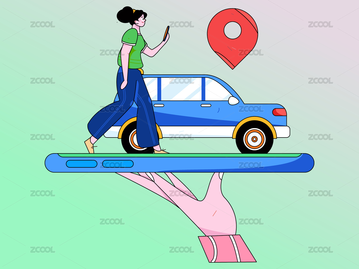 移动互联网旅游出行插画