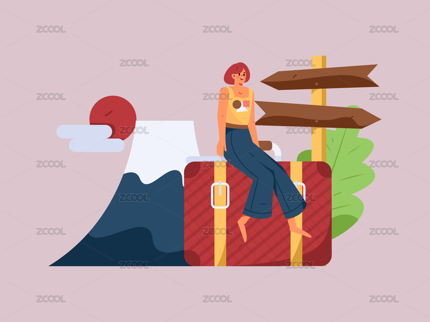 夏日女生旅行出行插画