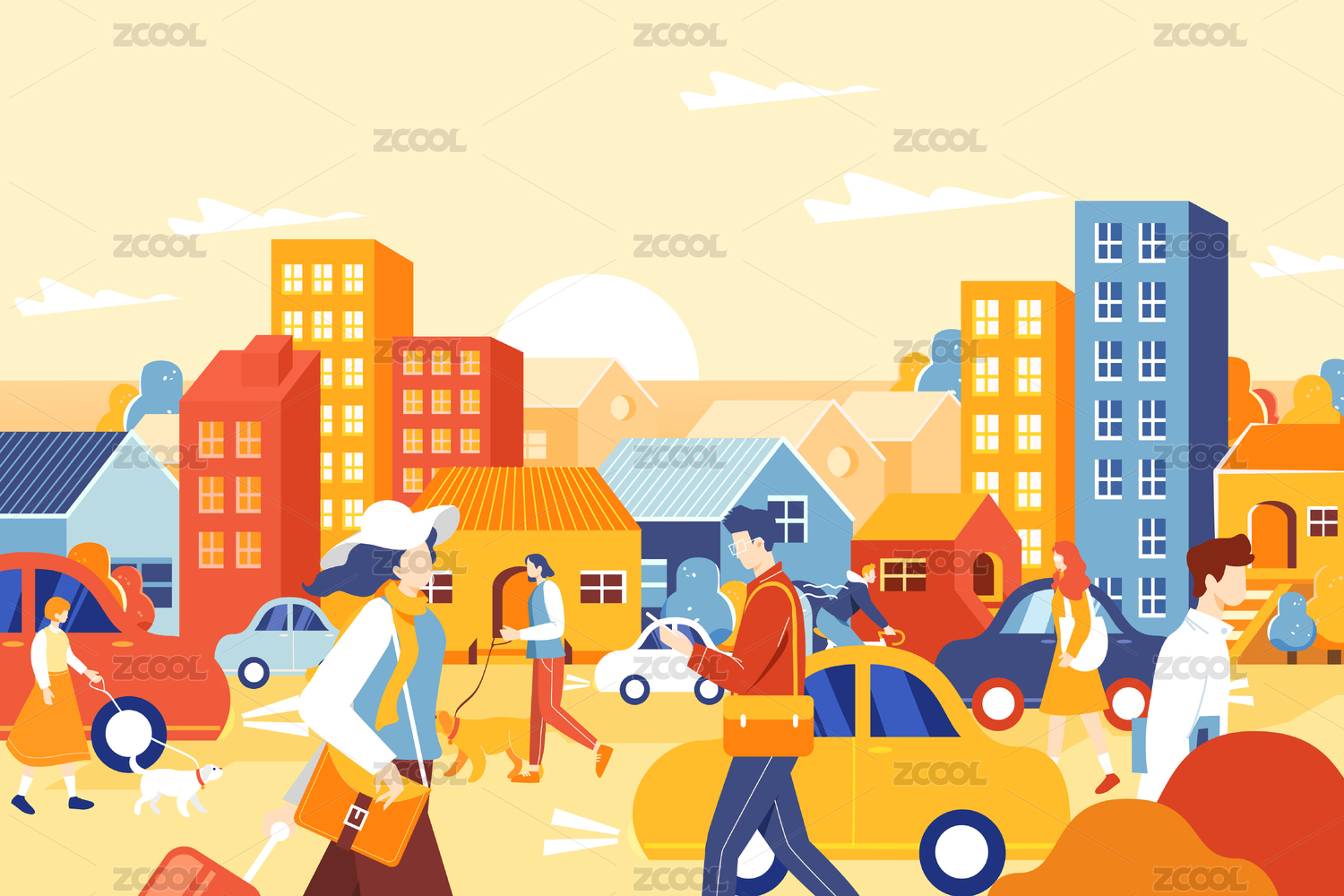 城市青年出行生活方式矢量插画