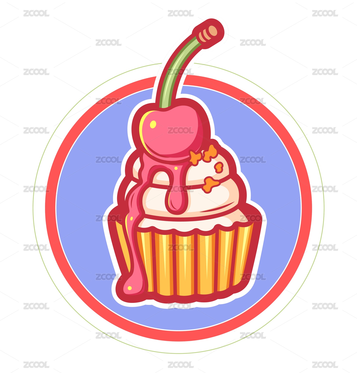 可爱卡通小蛋糕潮流描边插画