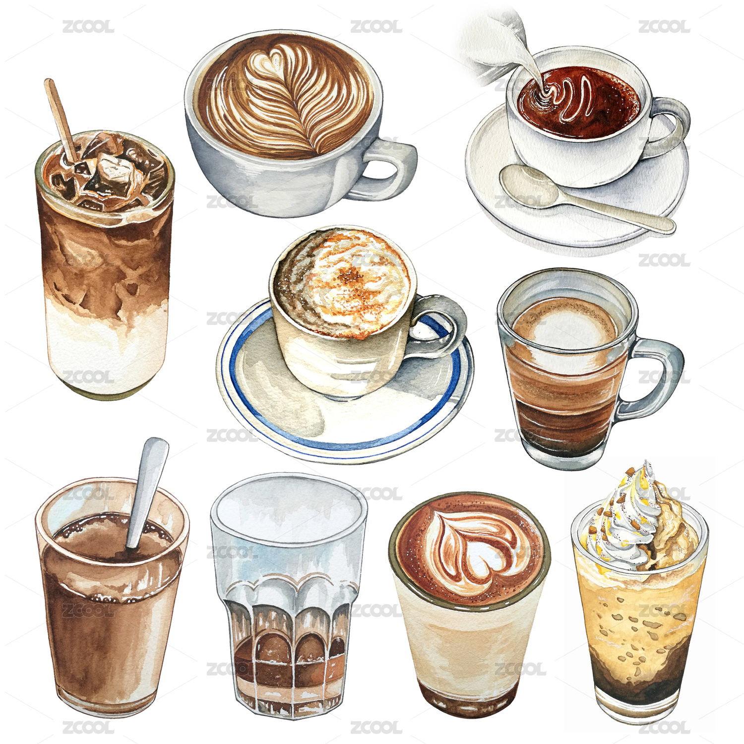 各款咖啡水彩手绘插画元素手帐素材