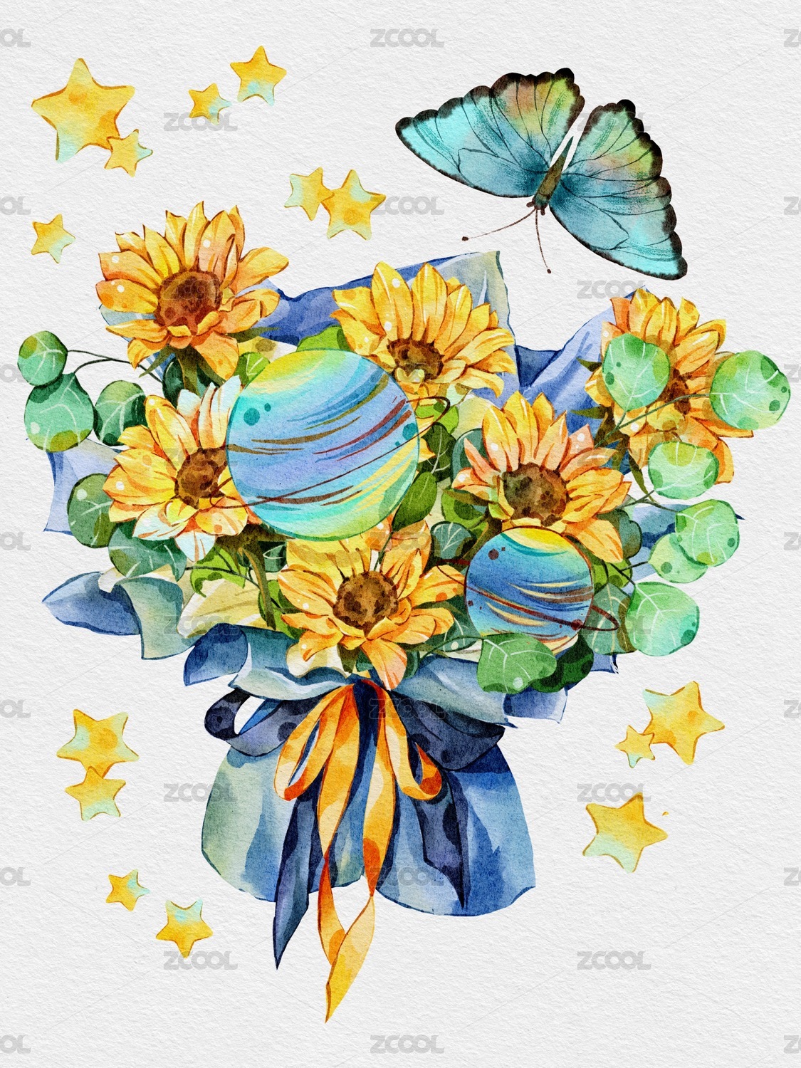 水彩花草素材