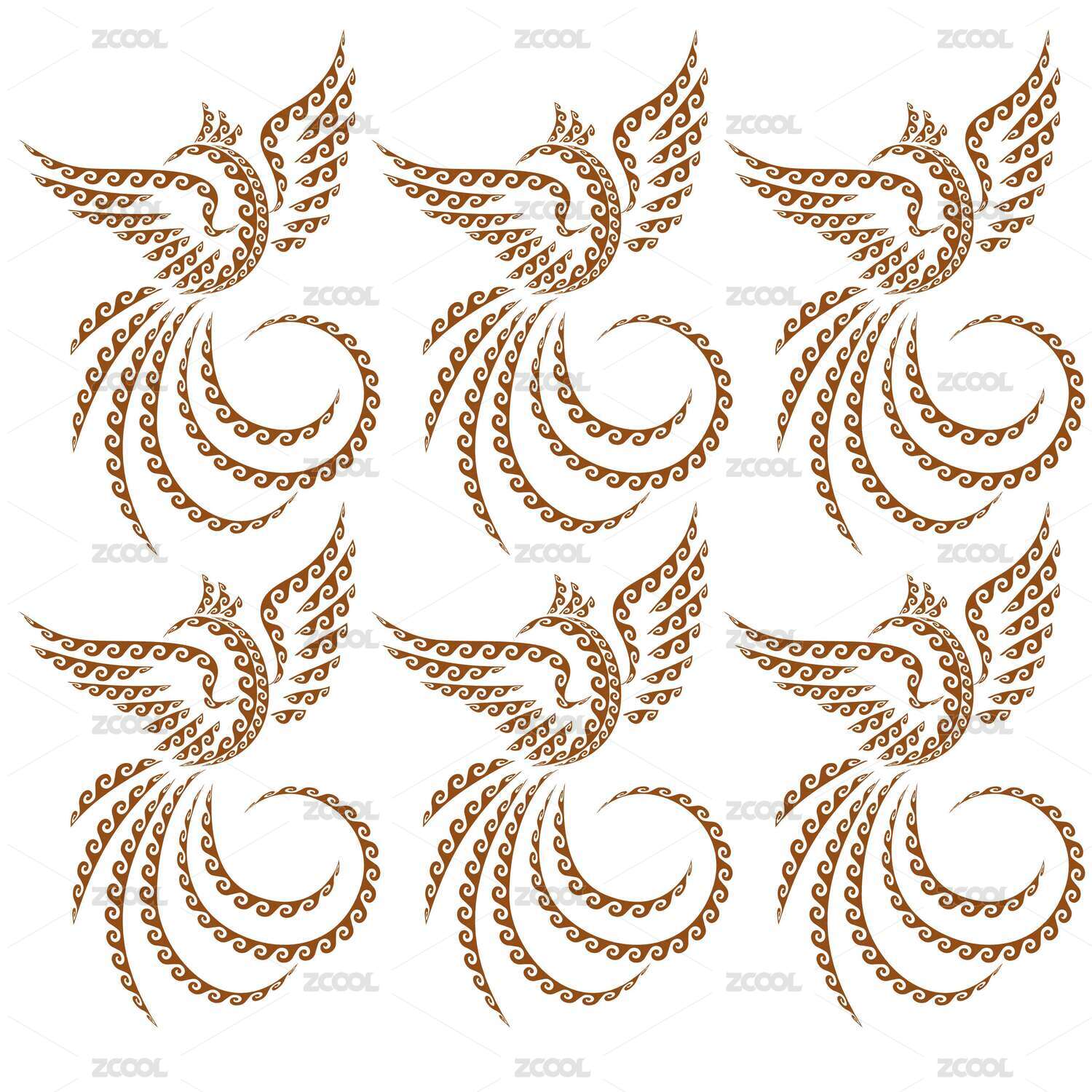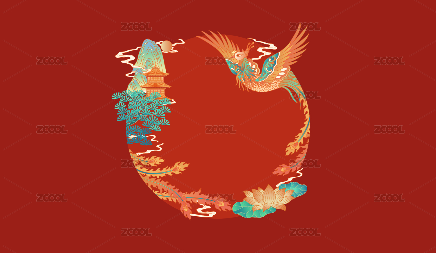 牡丹凤凰团花吉祥中国纹样国潮插画