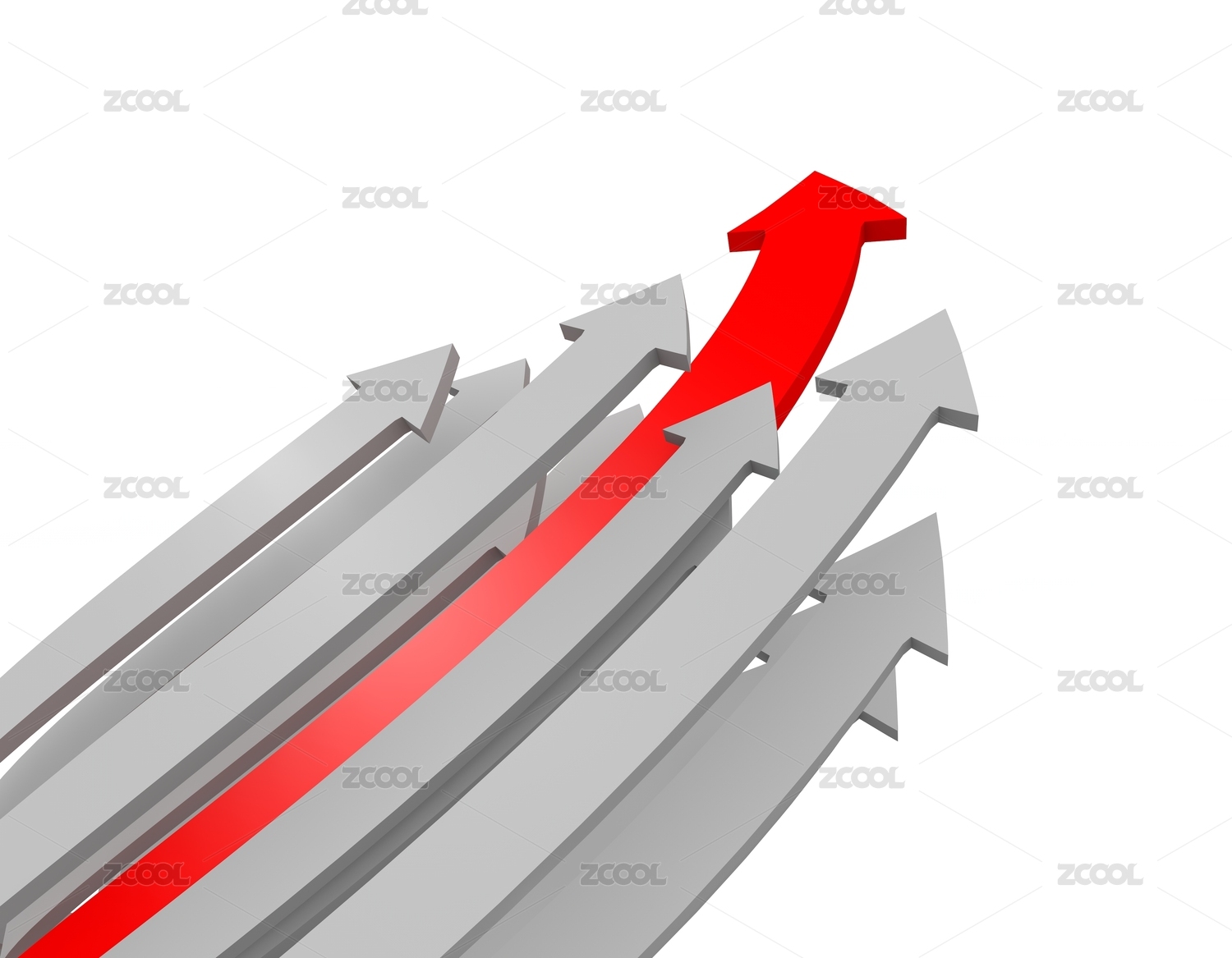 红色成功箭头,获取成就与成绩,领头者与行业领导