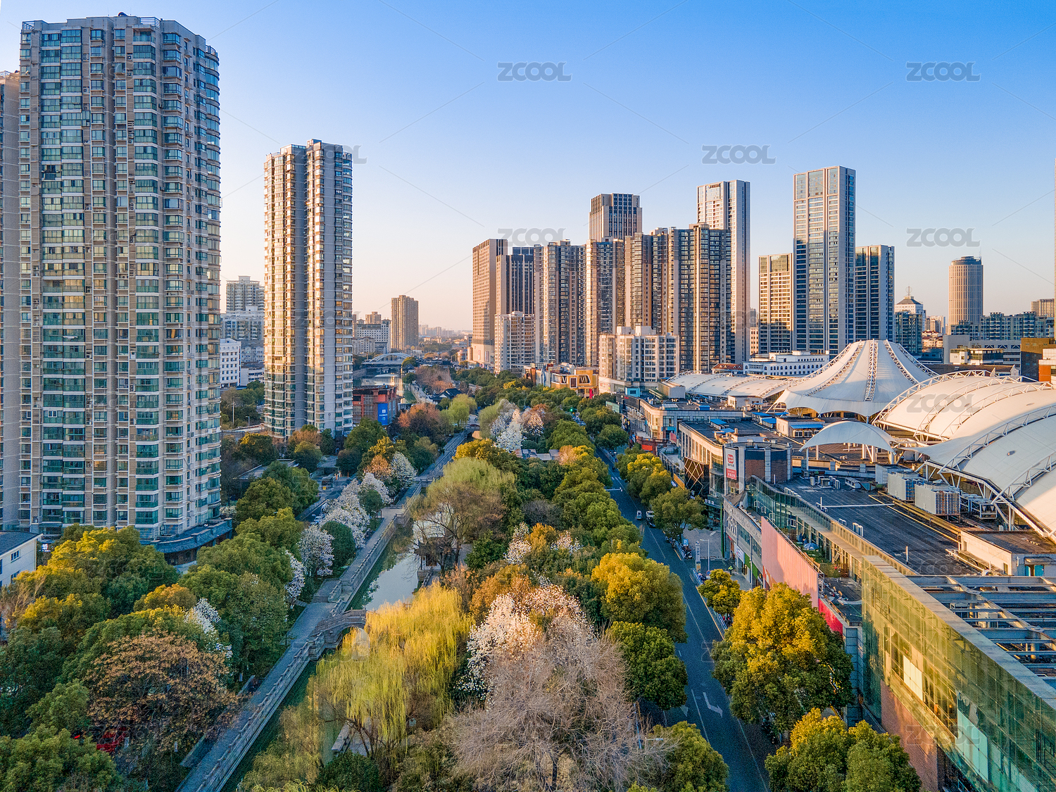 航拍常州钟楼区莱蒙都会商业街与西瀛里城墙