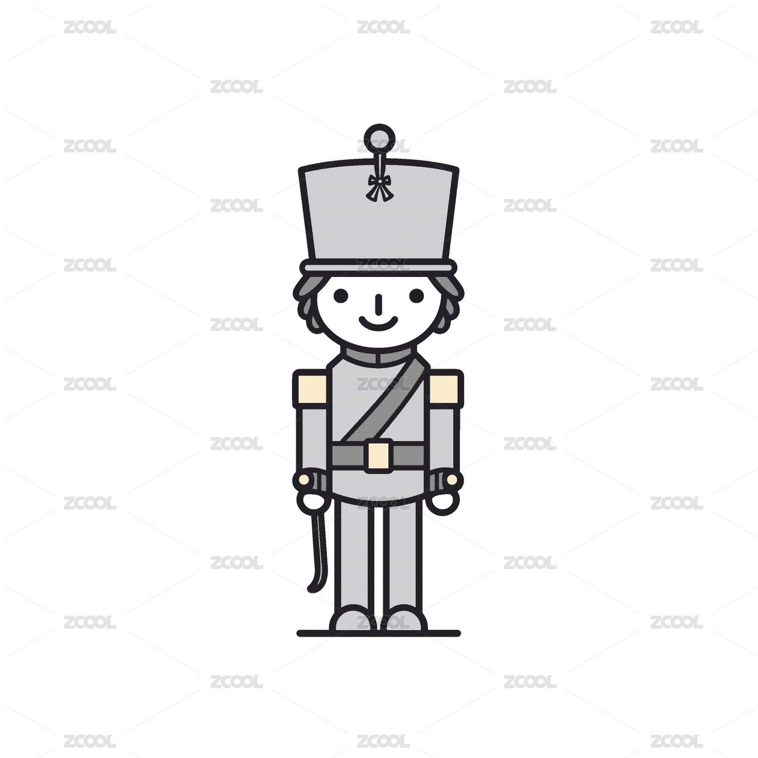 士兵的卡通图标,穿着灰色的制服戴着高帽