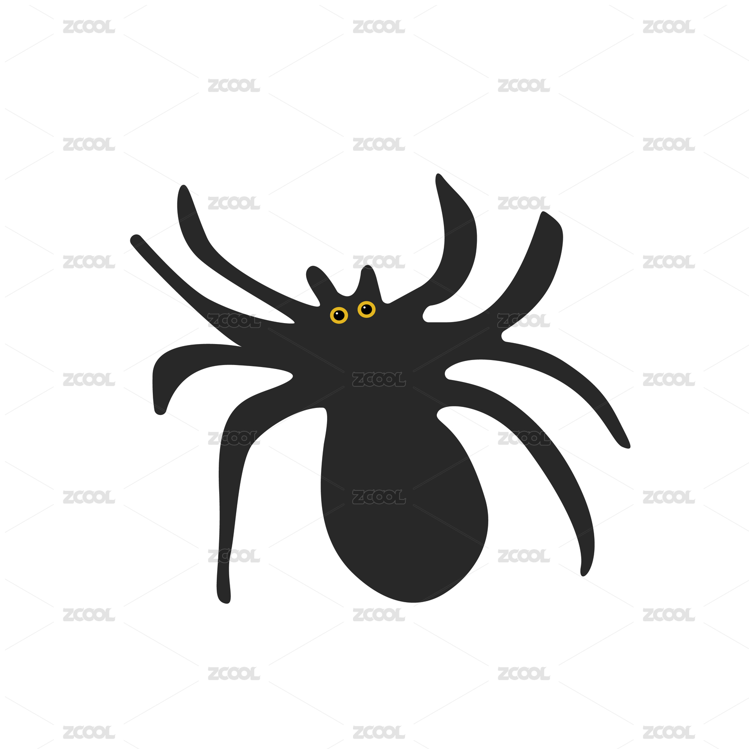 黑蜘蛛卡通图标或标志 平面卡通矢量插图孤