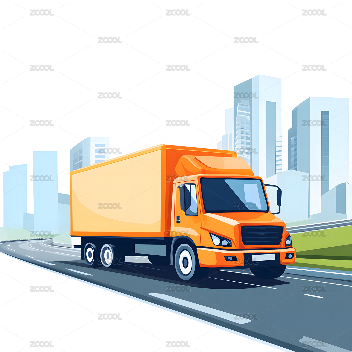 在城市行驶的物流快递厢式货车