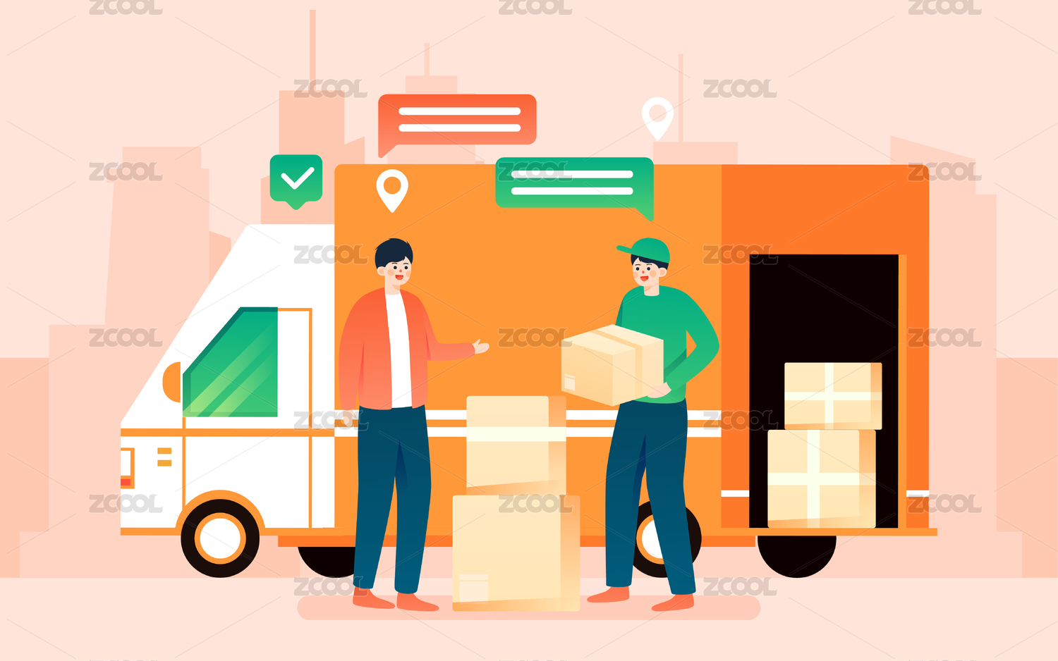 快递物流包裹签收人物插画物流运输活动海报