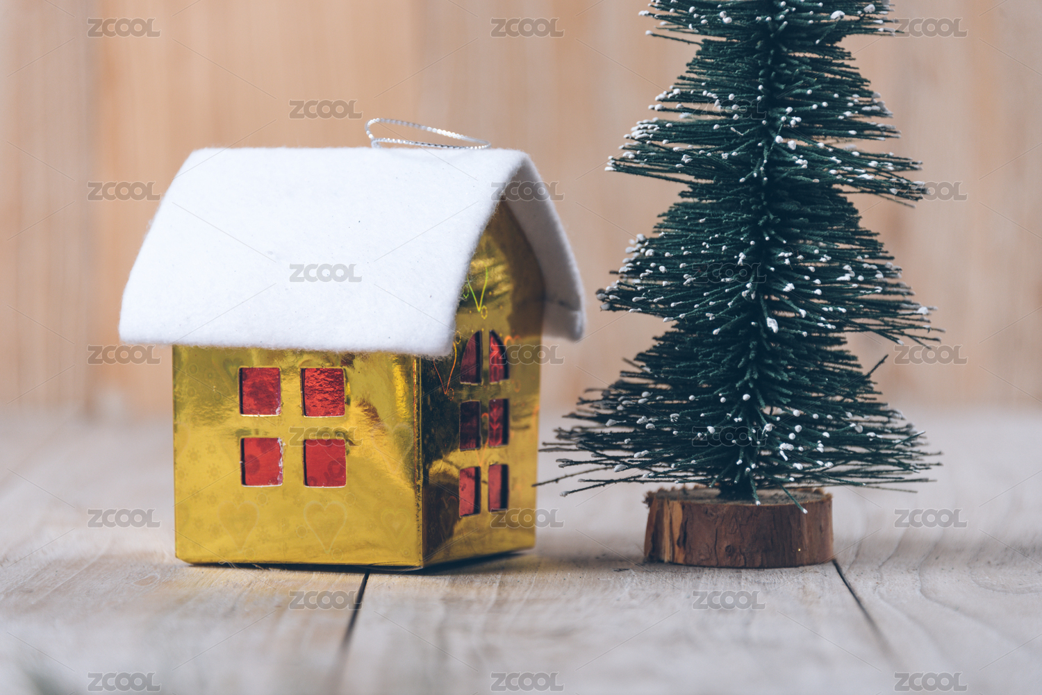 圣诞装饰品用的小玩意,树和玩具屋。
