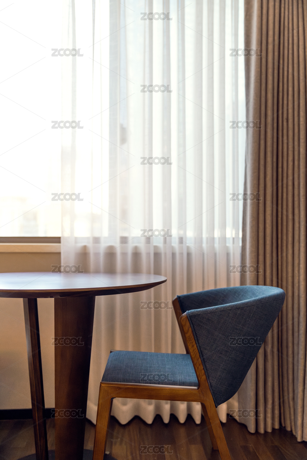 酒店窗户边的桌子和椅子
