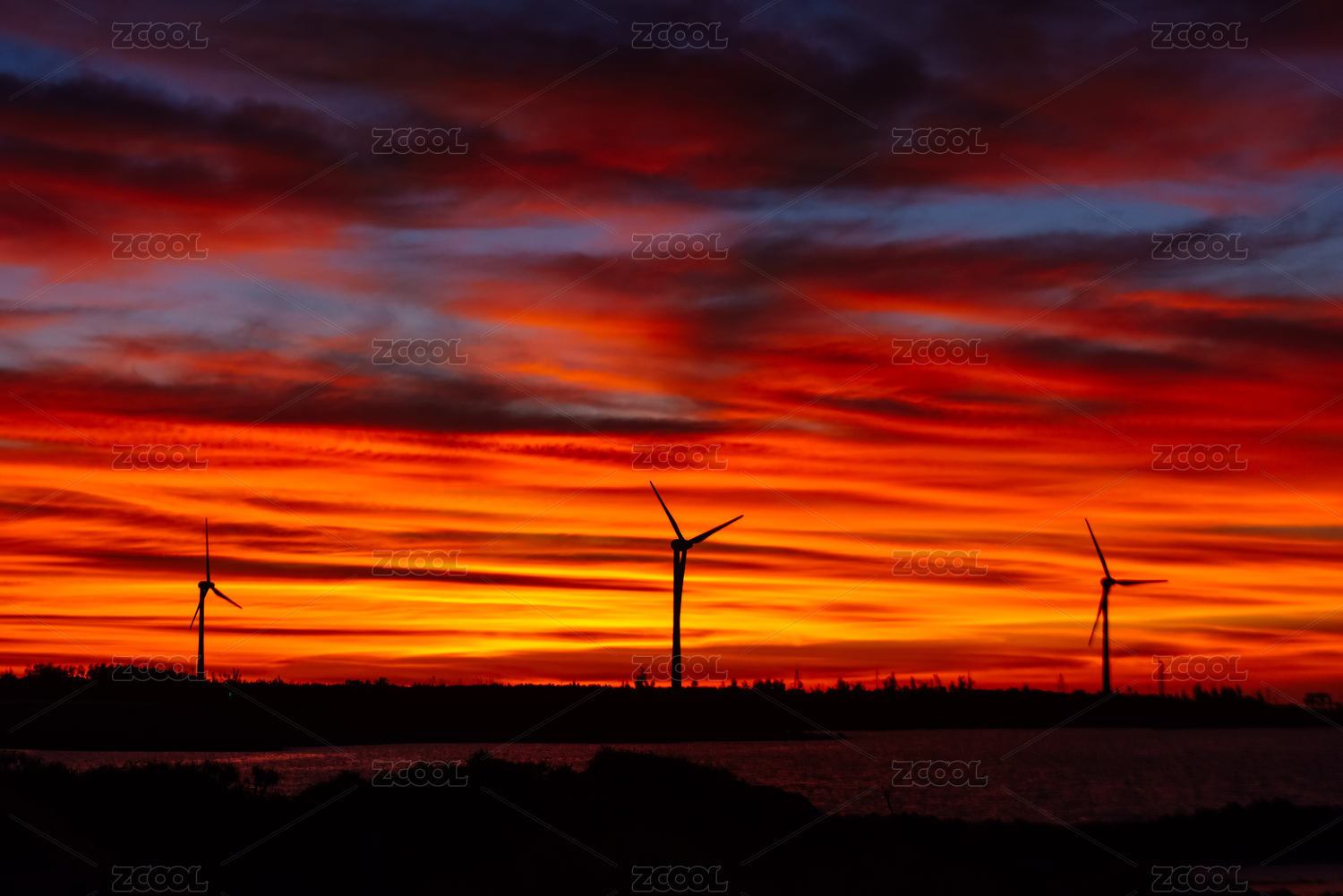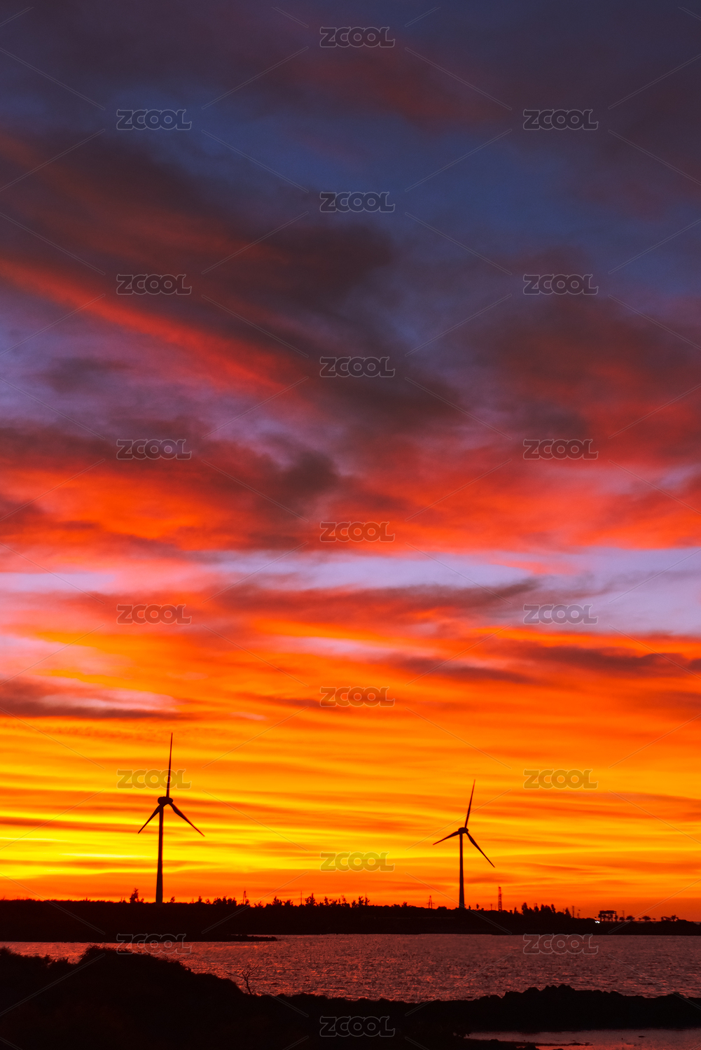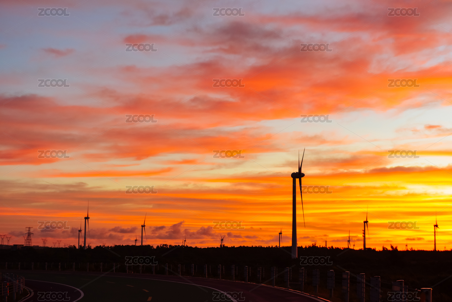 海南乐东县海南环岛路日落火烧云与风电风车