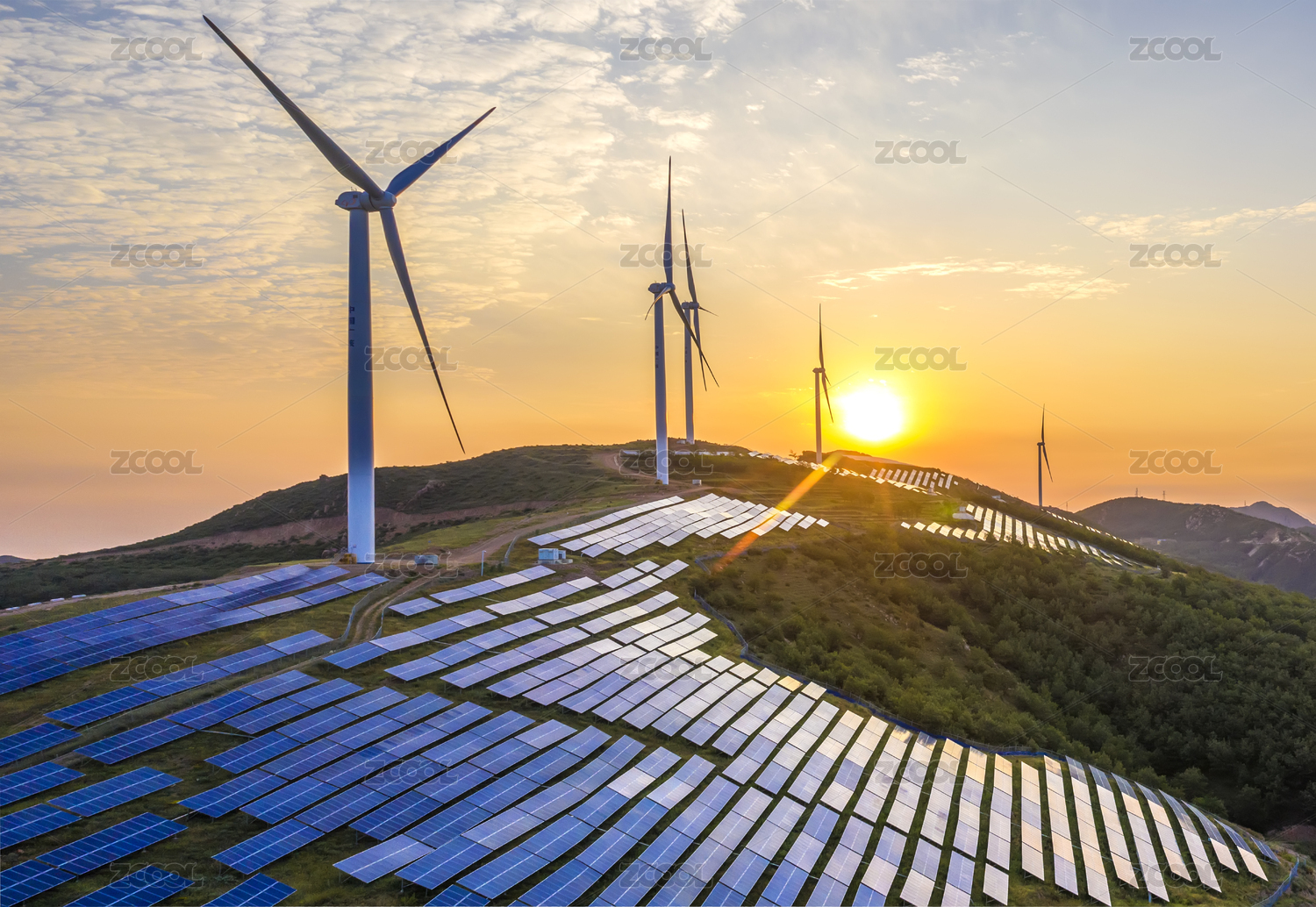 航拍中国河南禹州市具茨山上的风电光伏