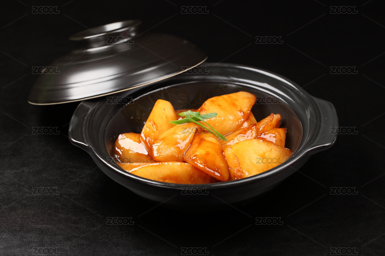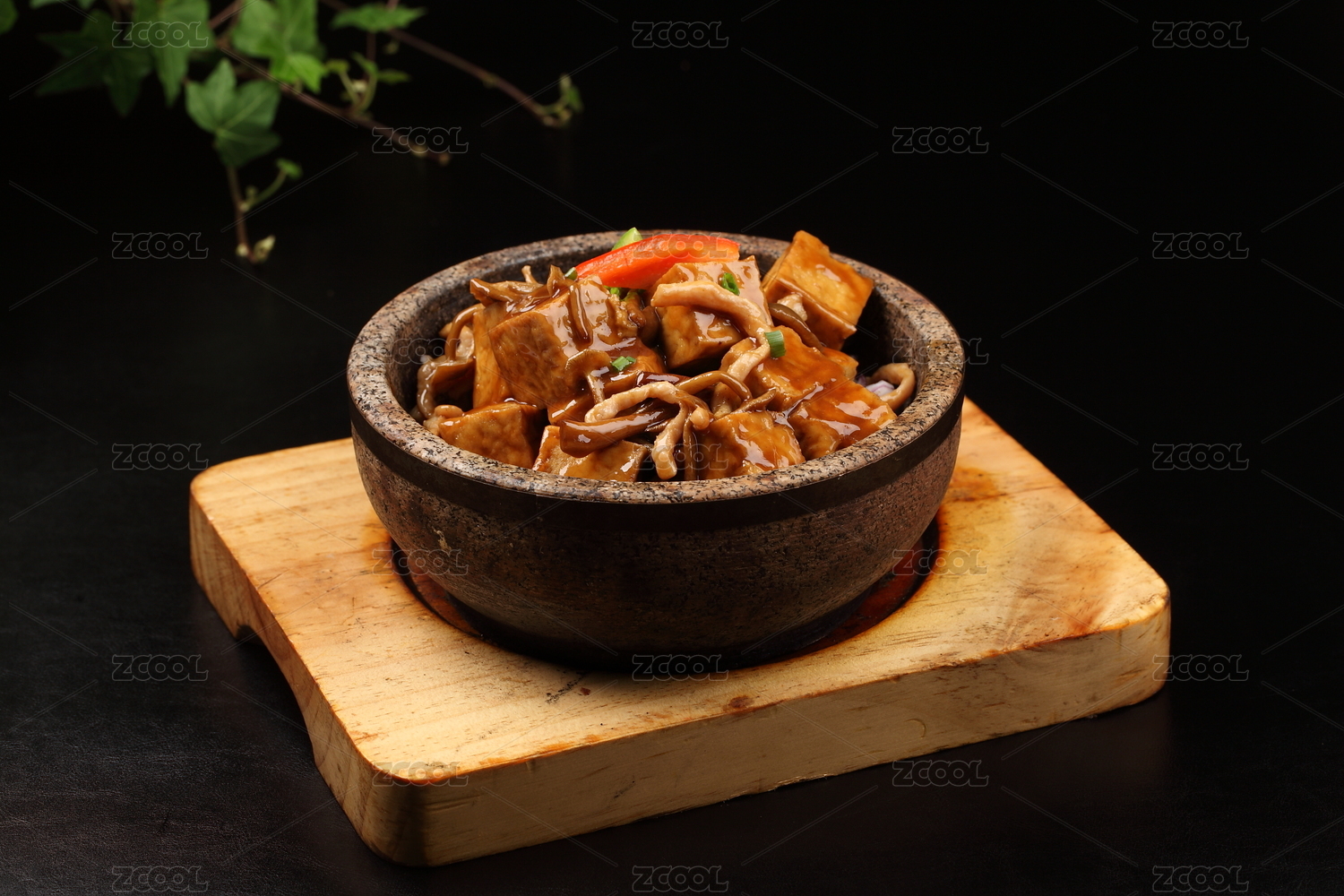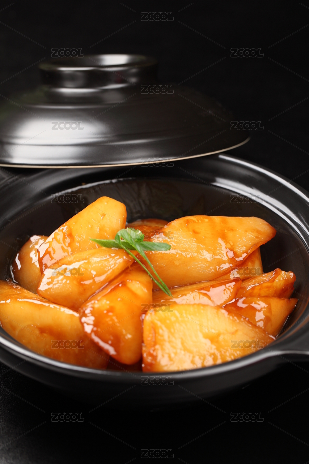 暗色木纹桌面上放着一碗鲍汁狮子头烩海参