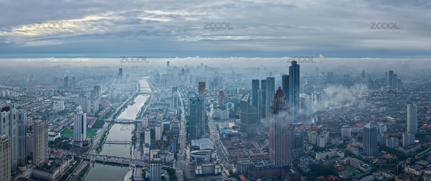 晴天云层上飞机窗户俯拍陆家嘴白云缭绕