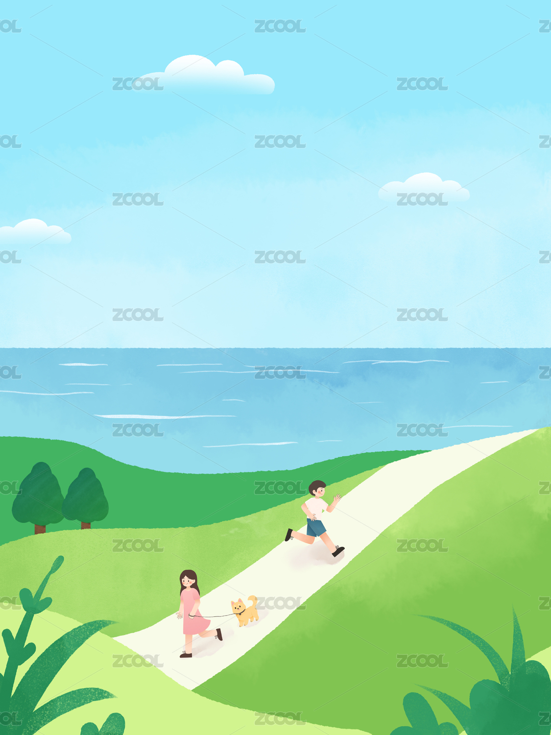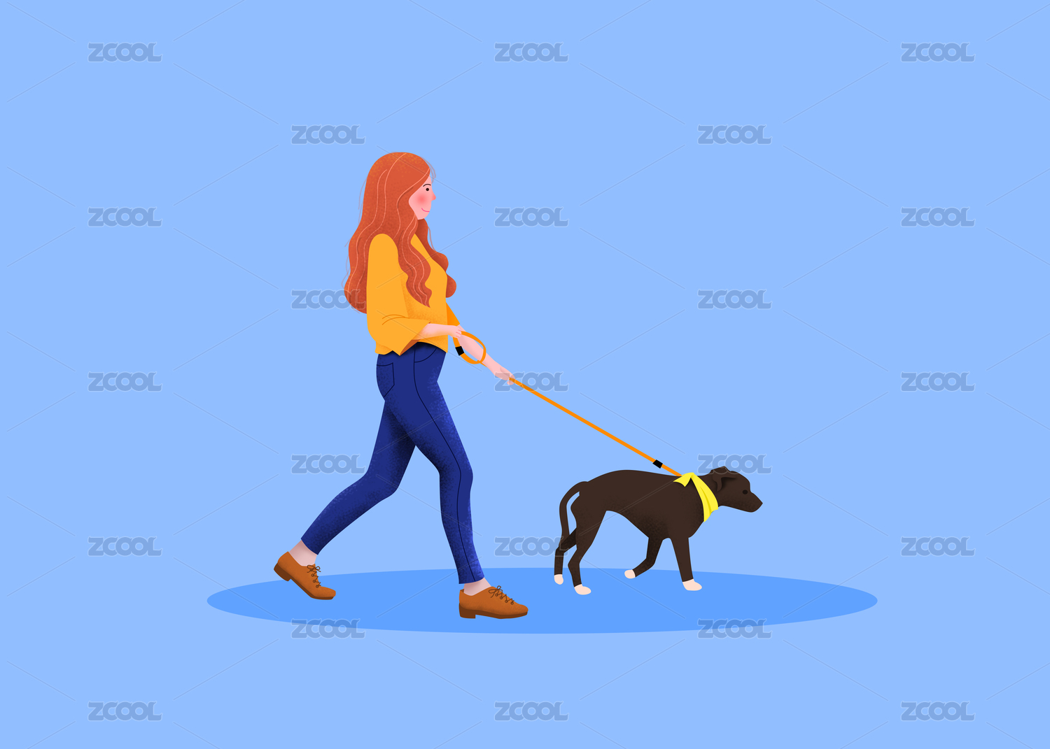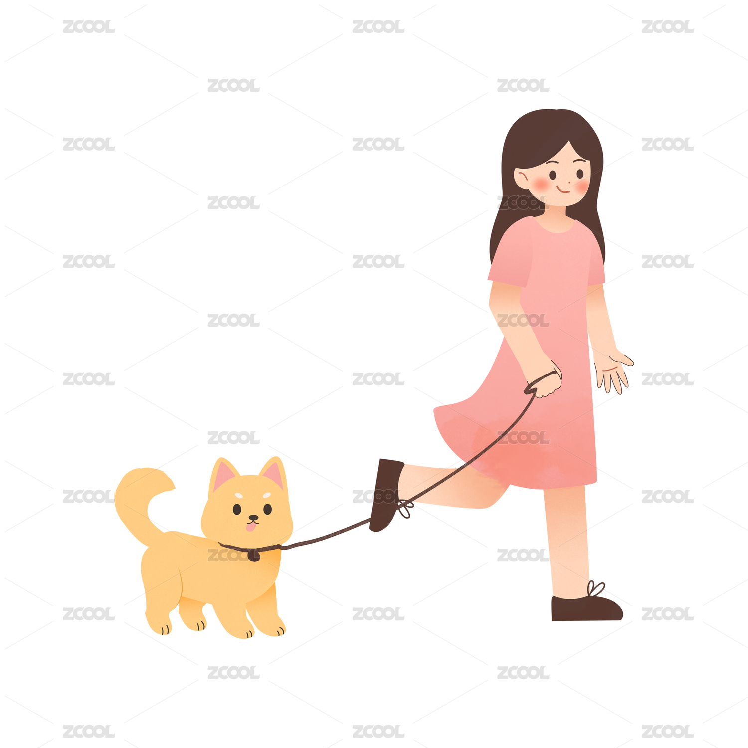 遛狗少女的插画