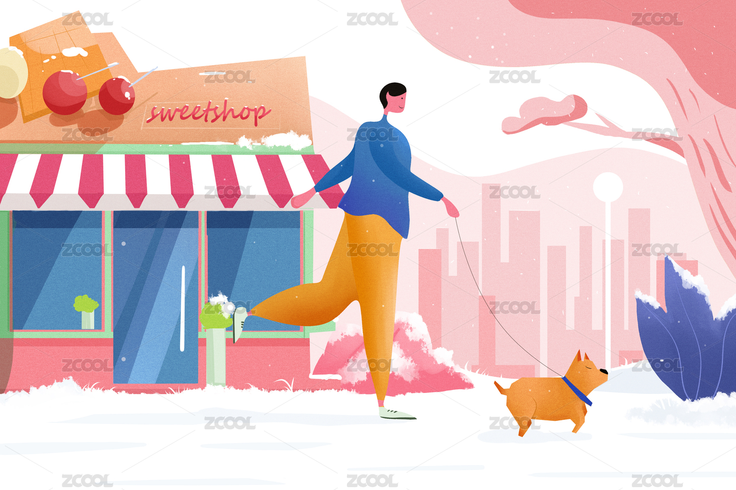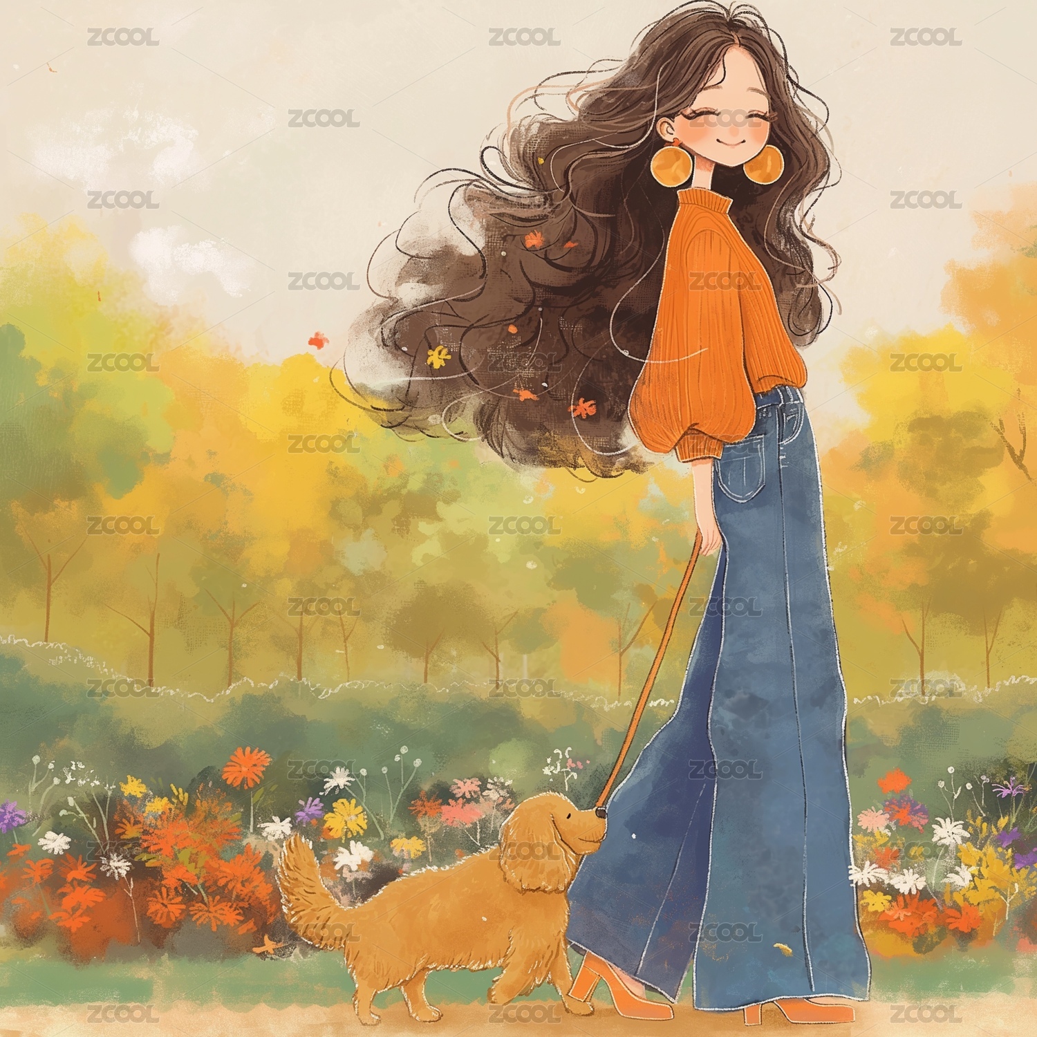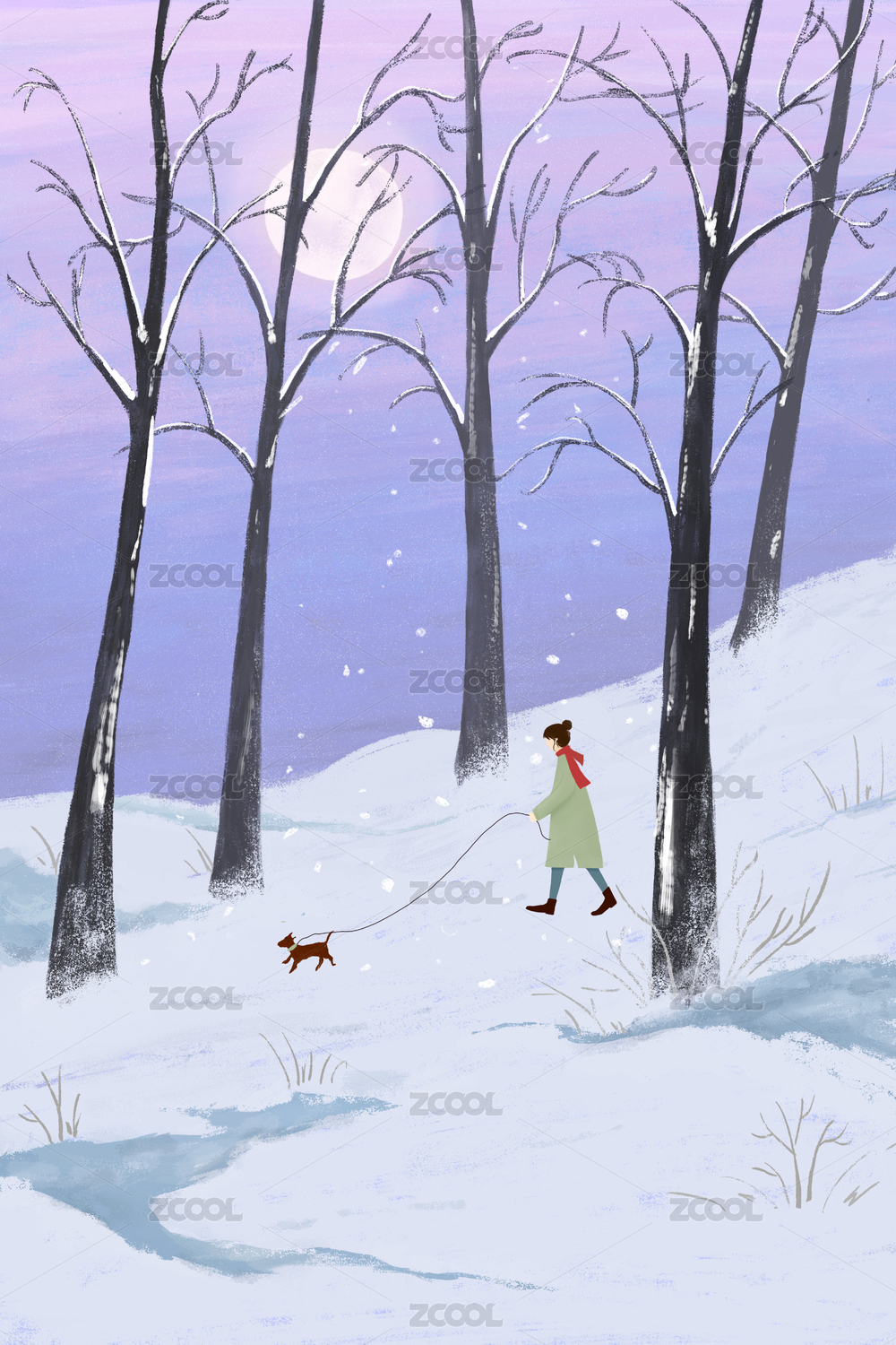 遛狗少女的插画