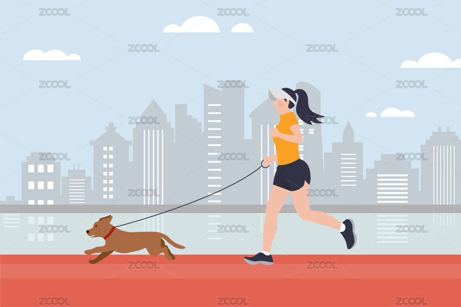 运动遛狗矢量插画
