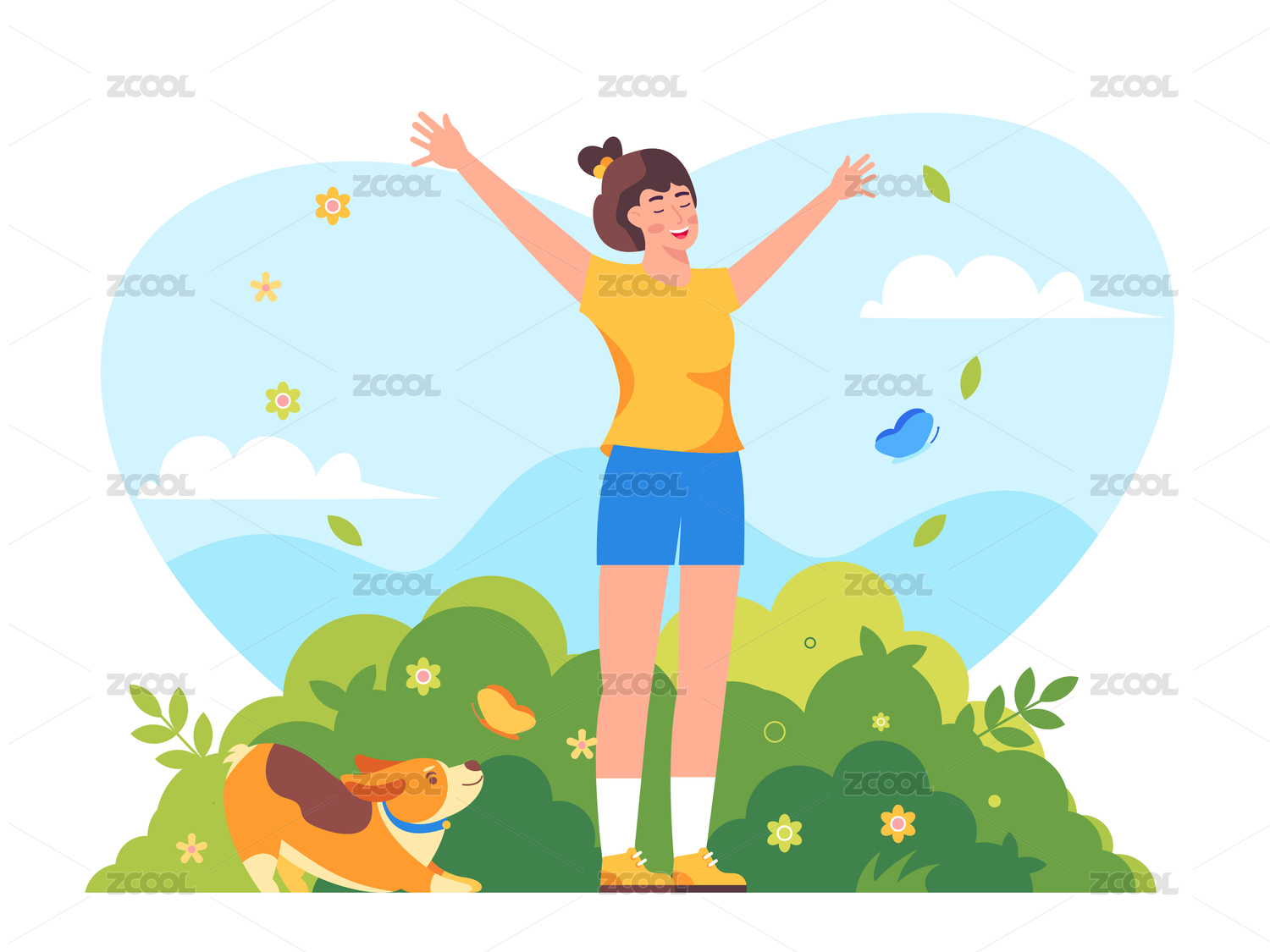 假期生活方式遛狗插画