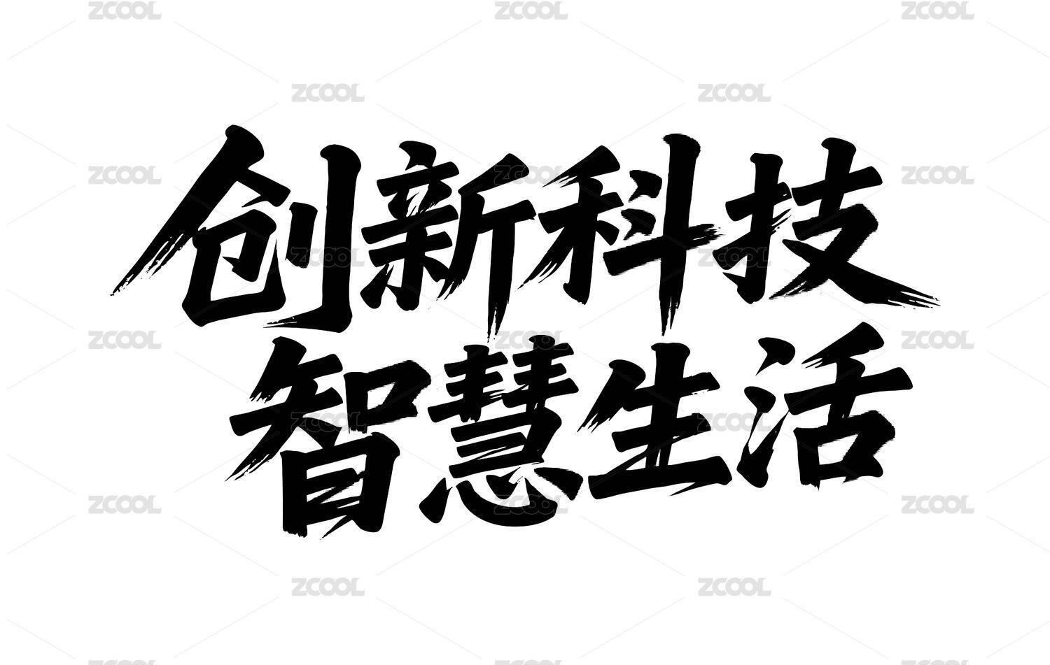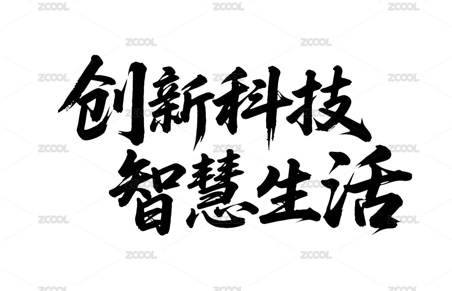 创新科技智慧生活矢量书法手写毛笔字