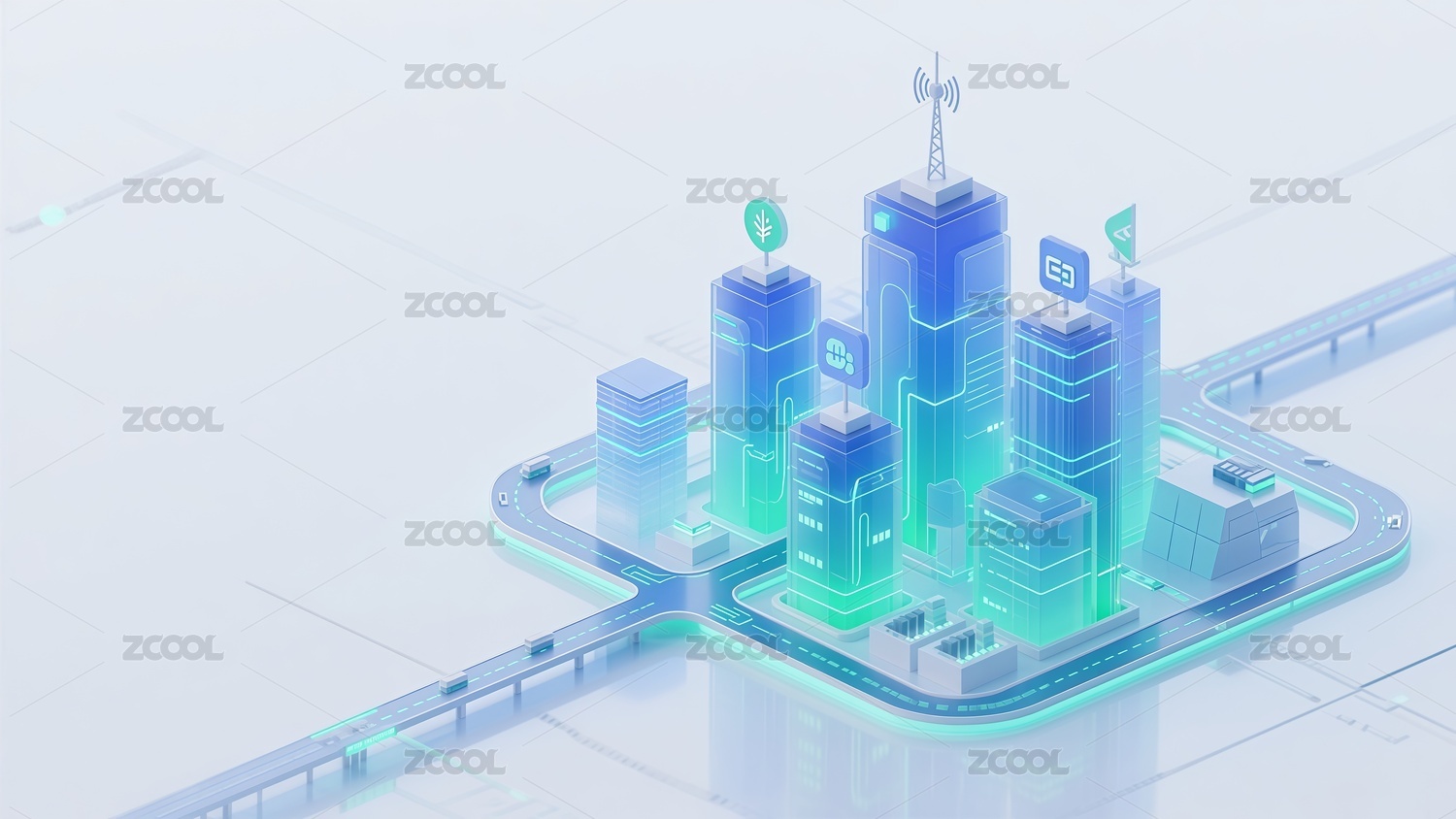 3D风格科技智慧城市插画