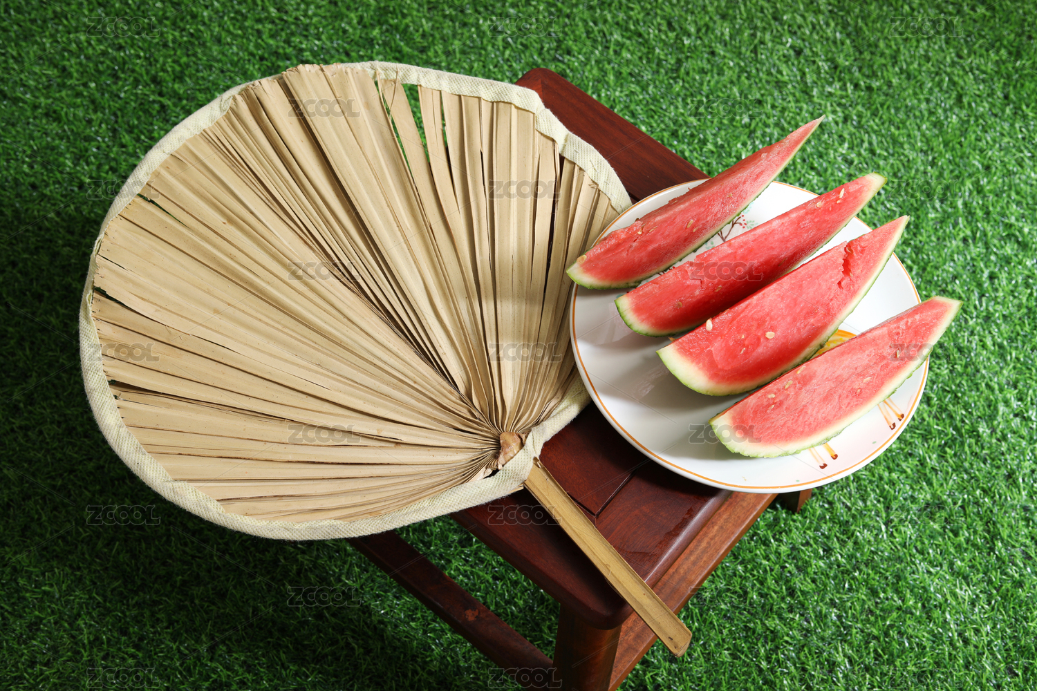 一盘西瓜和一把蒲扇