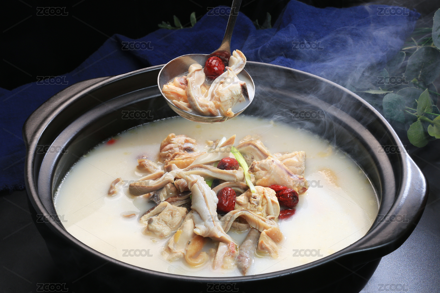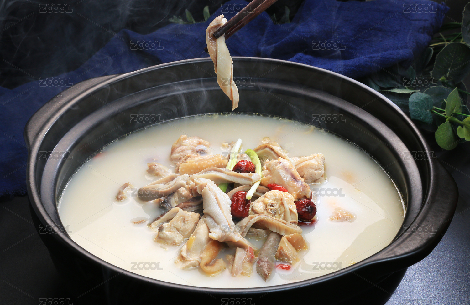 黑色汤锅里的猪肚鸡