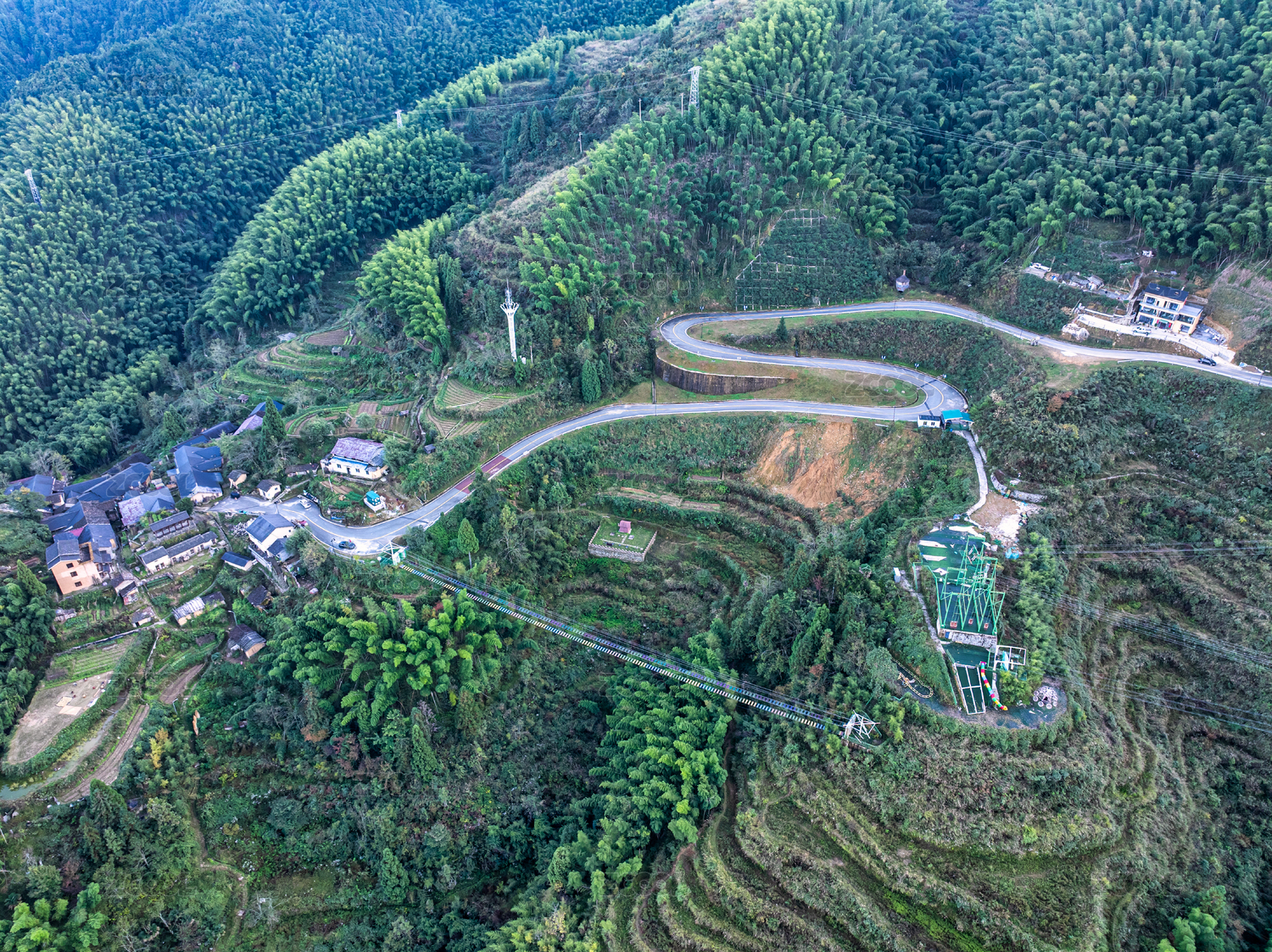 云和梯田七星墩景区高空玻璃桥吊桥航拍
