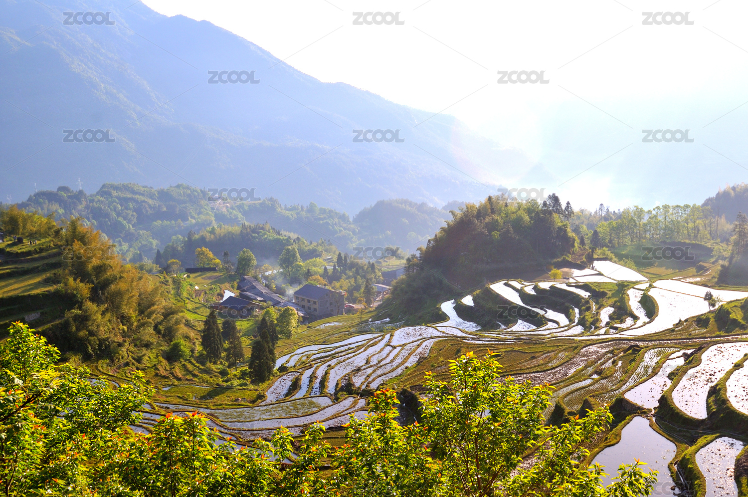 中国浙江云和 春暖花开时节的云和梯田