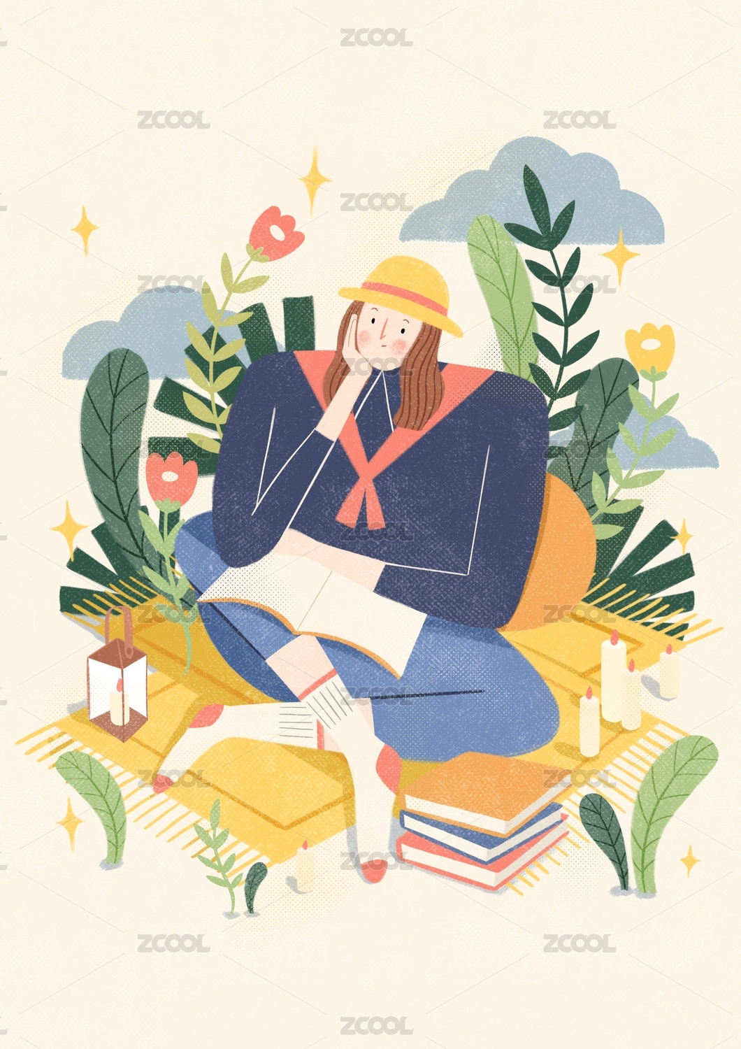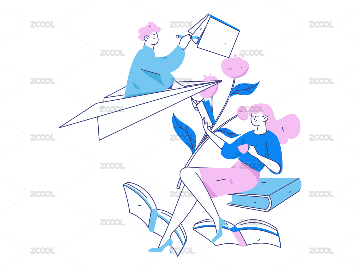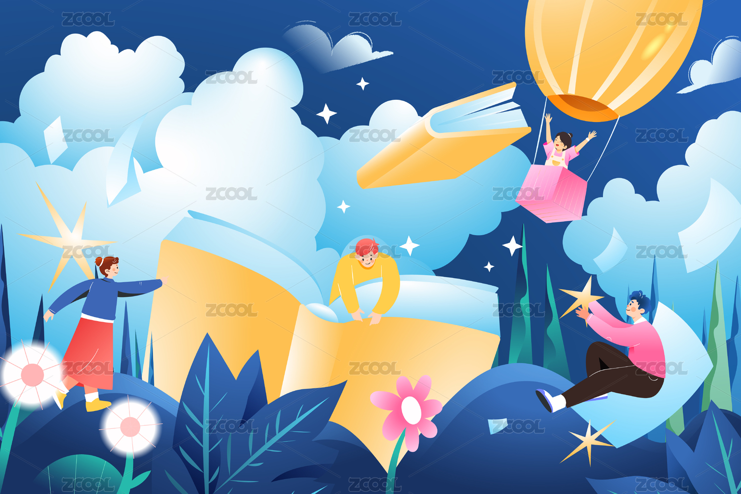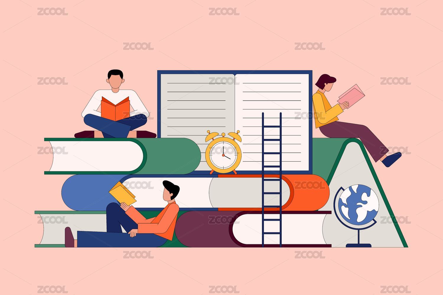 世界读书日阅读人物扁平矢量概念运营手绘插