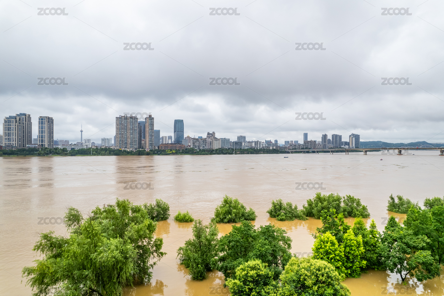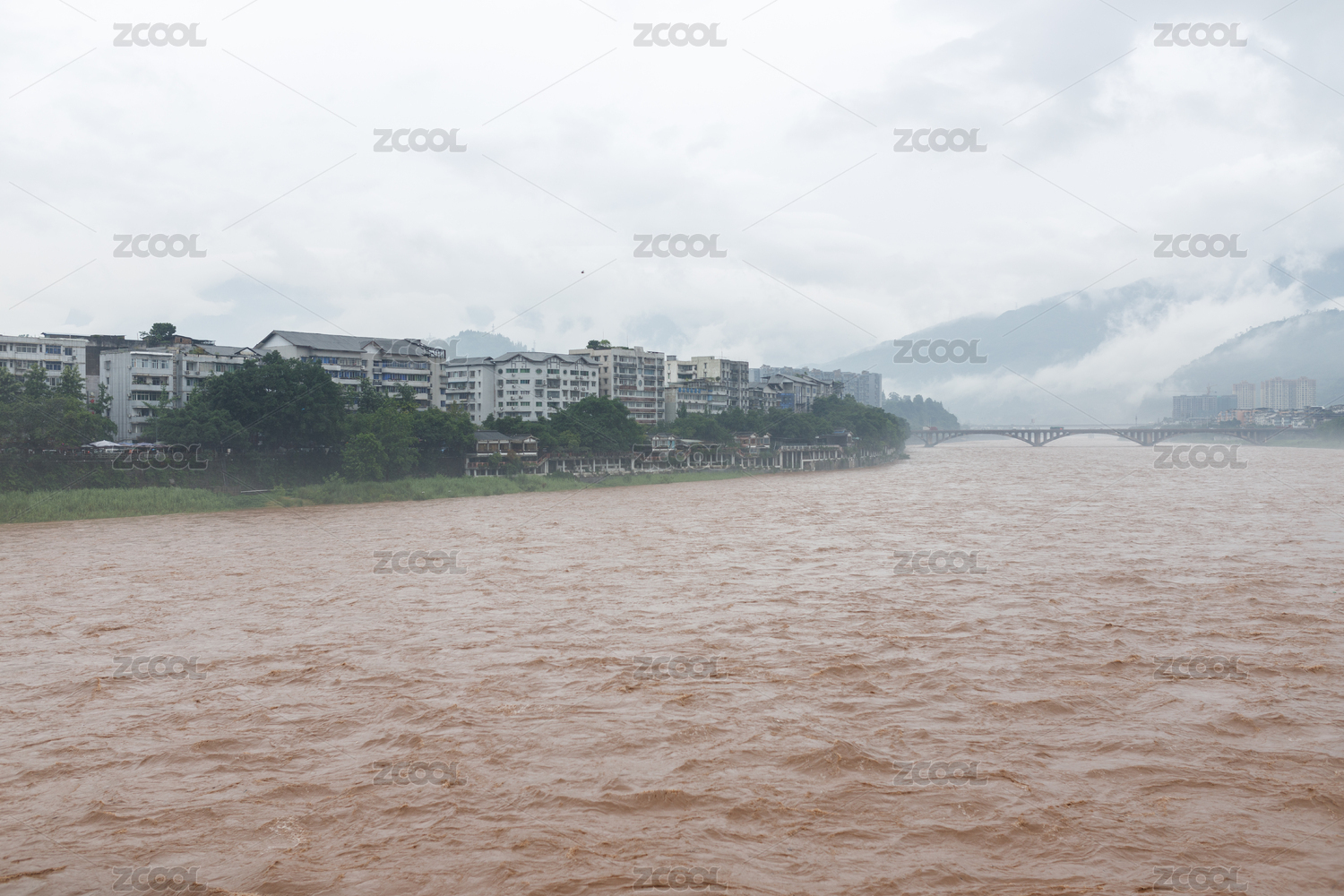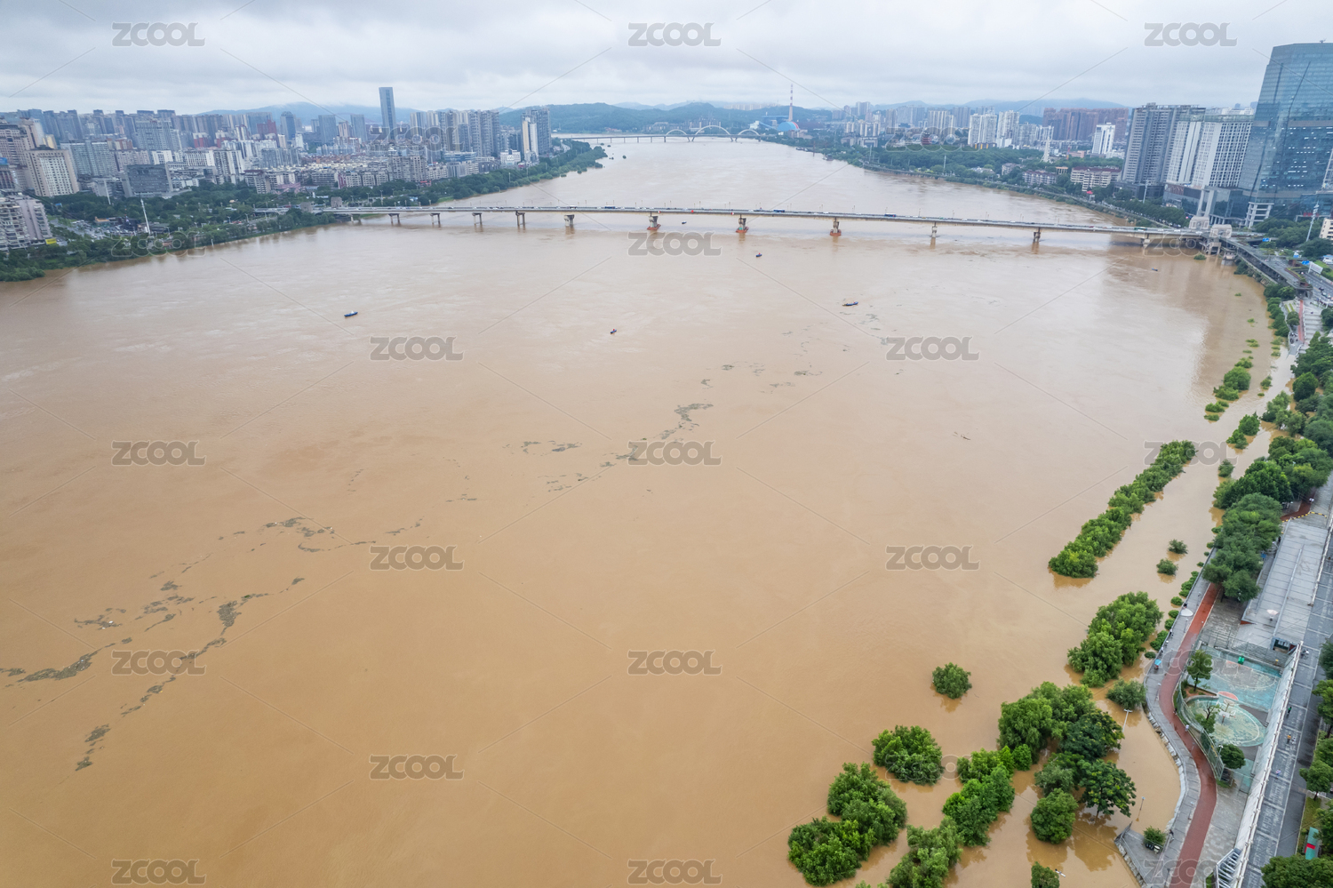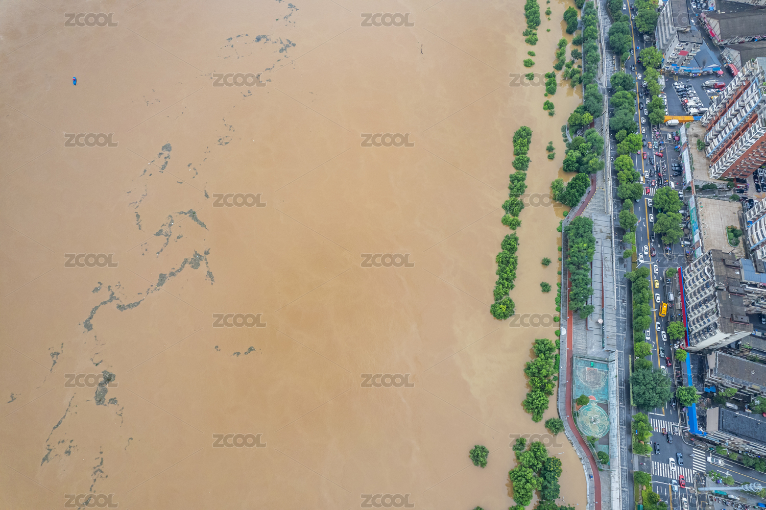 浙江新安江汛期泄洪后房屋淹没水灾航拍