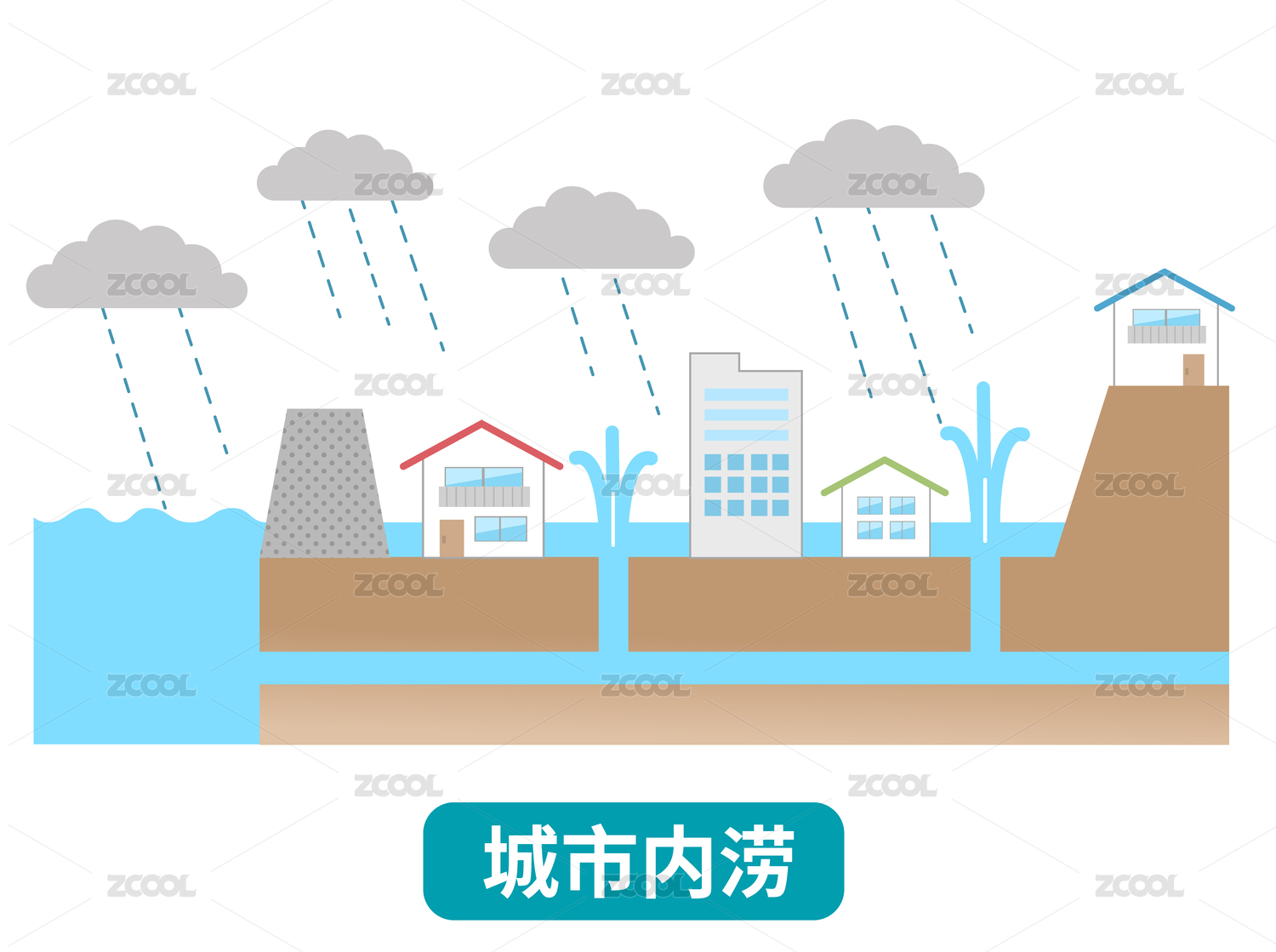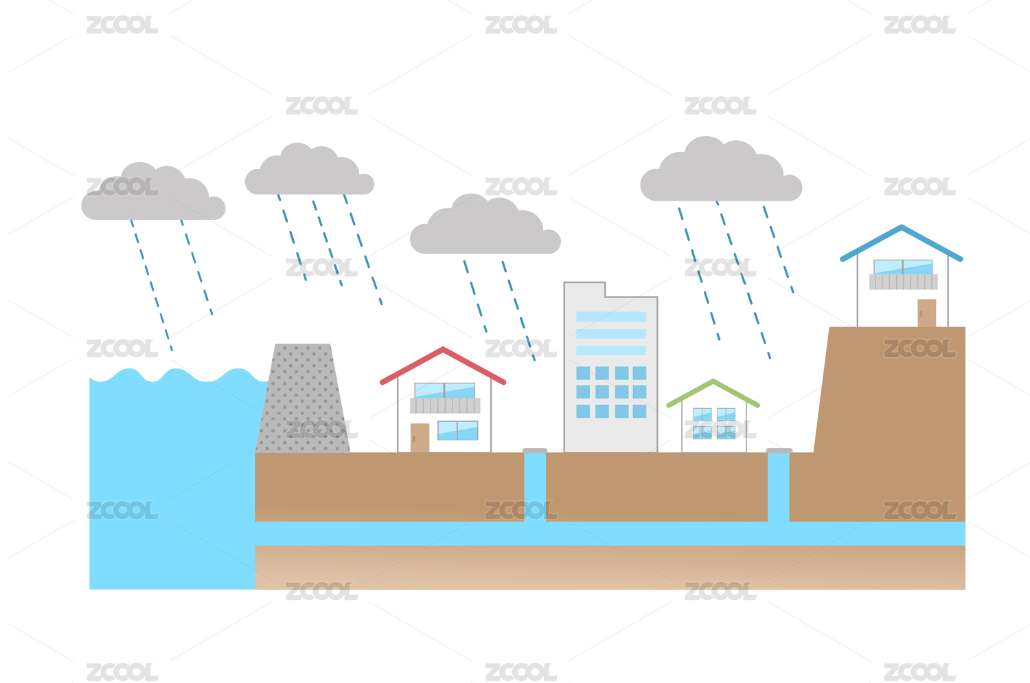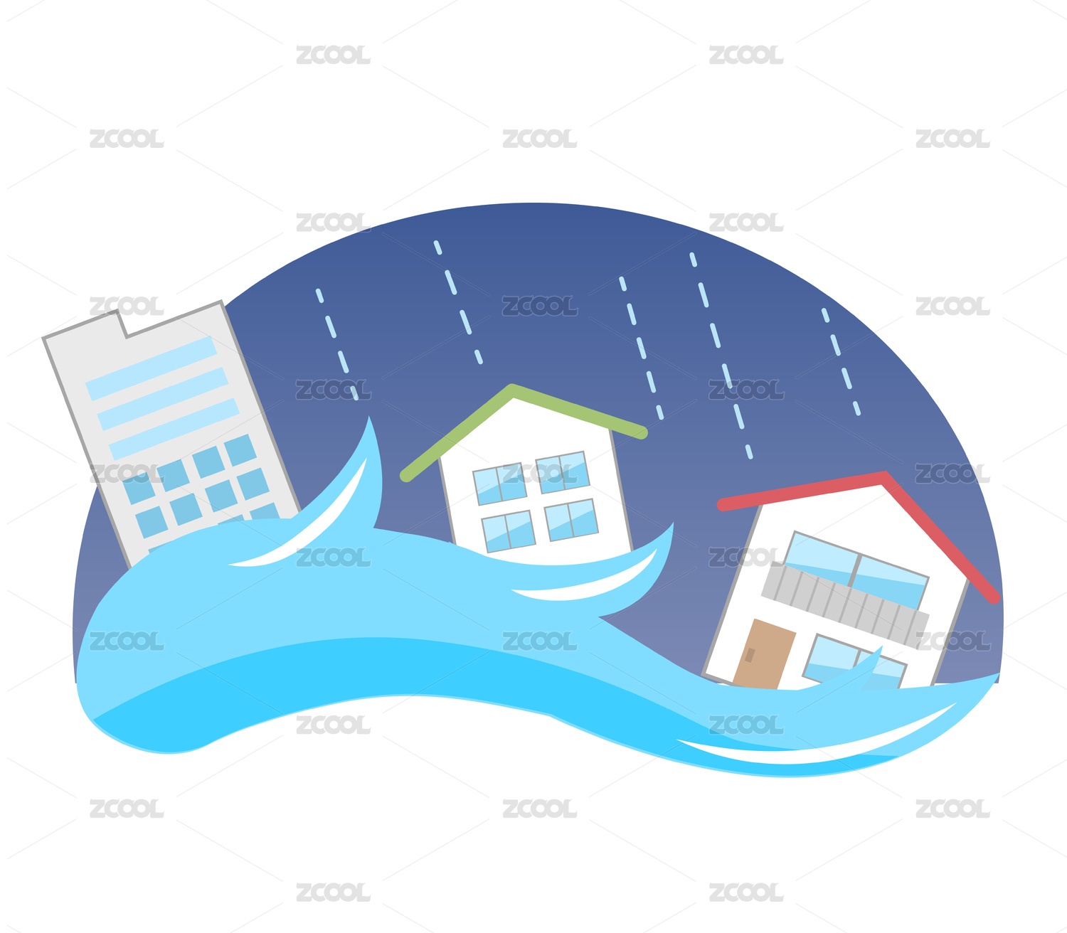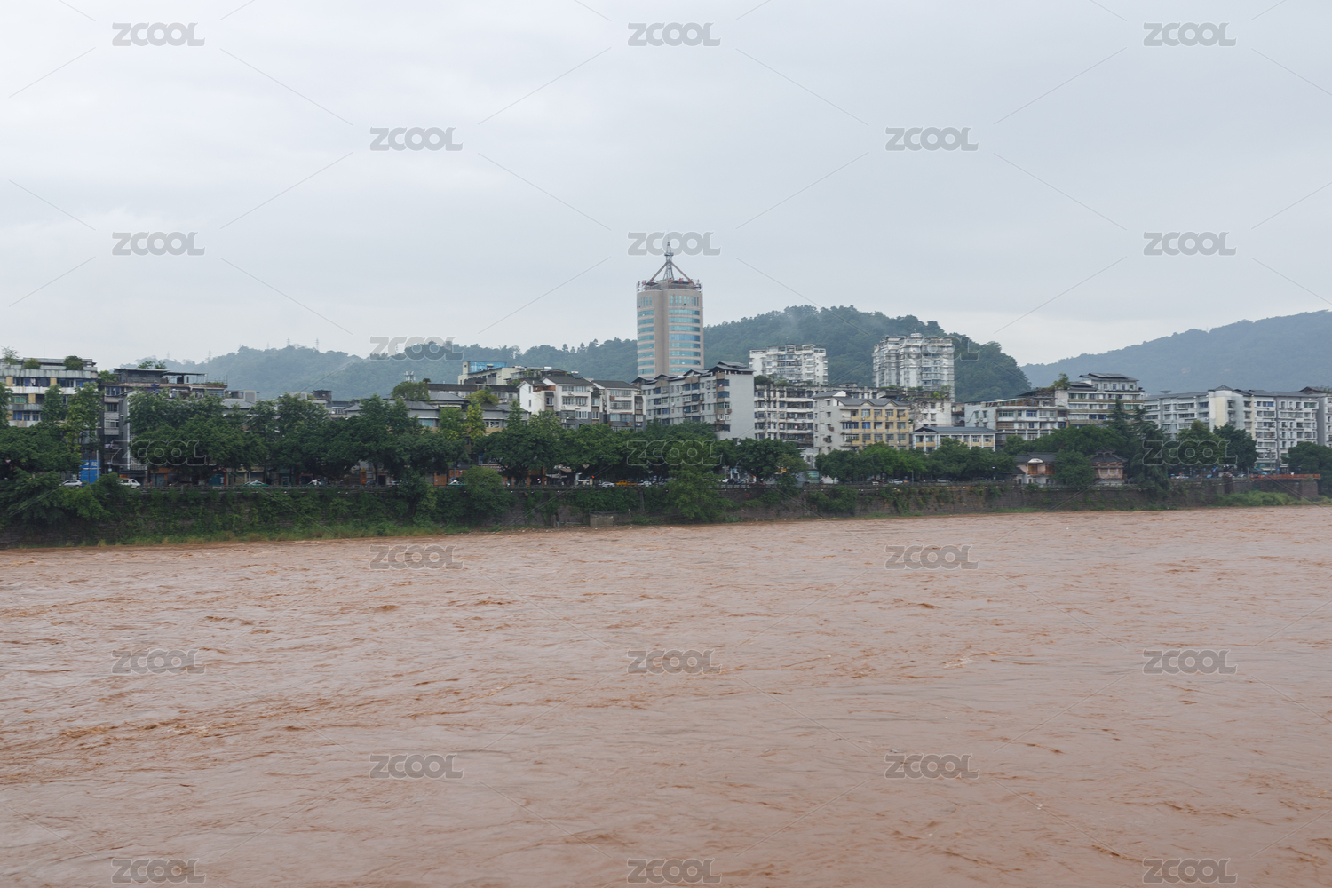浙江新安江汛期泄洪后房屋淹没水灾航拍