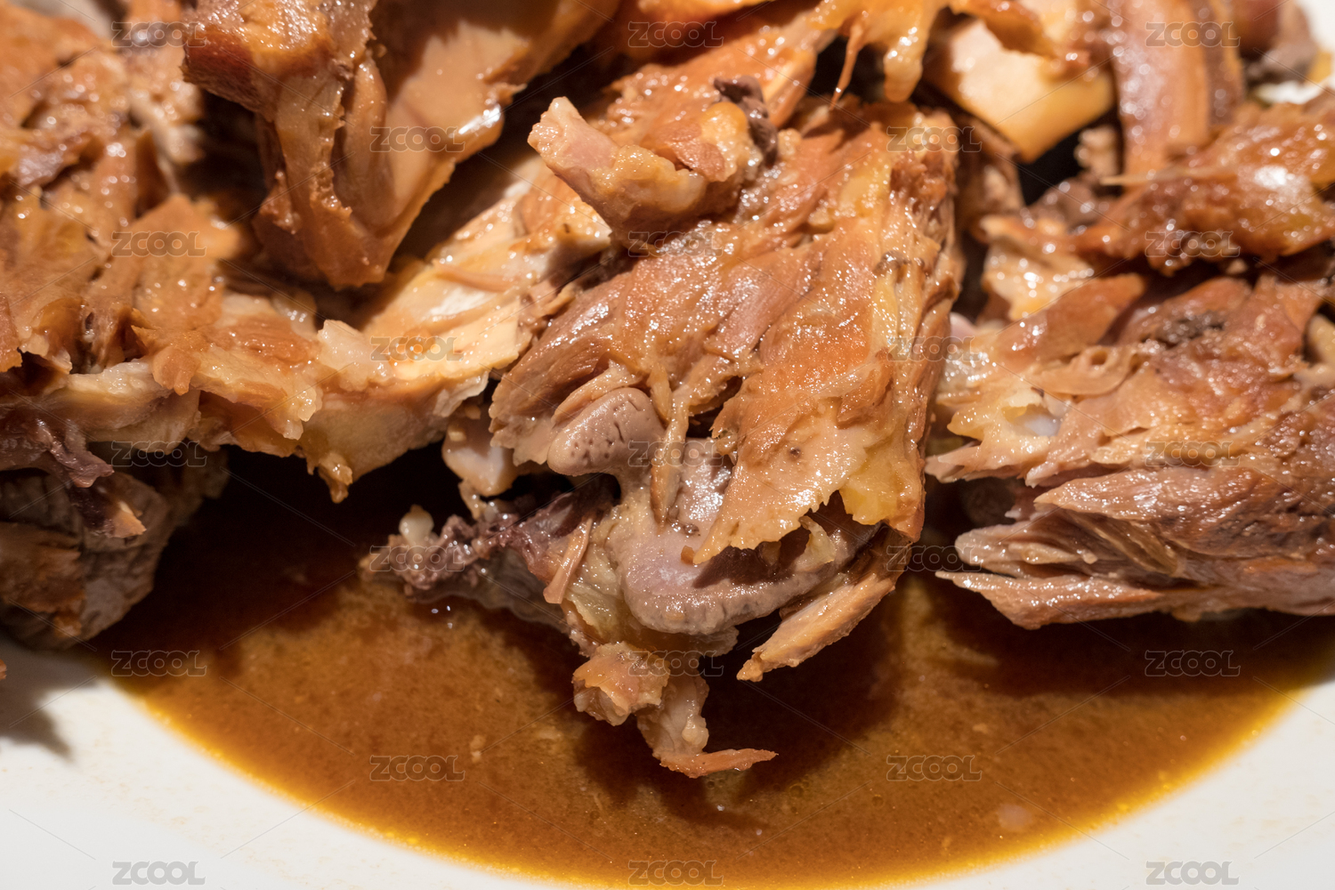 餐桌上美味的酱大骨近距离特写