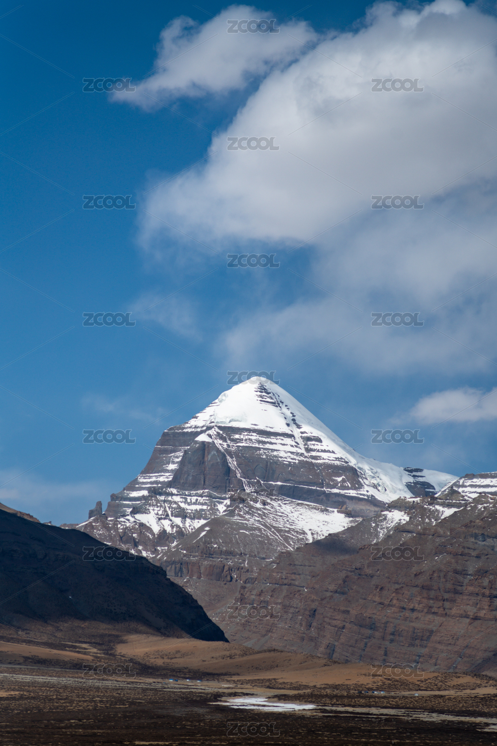 中国冈底斯山脉冈仁波齐主峰正面近距离特写