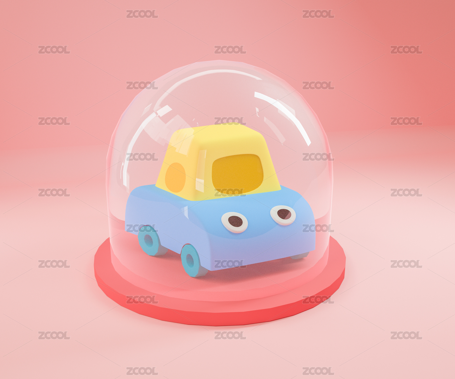 a 3D toy car is covered in the glass hood on glass-topped tables