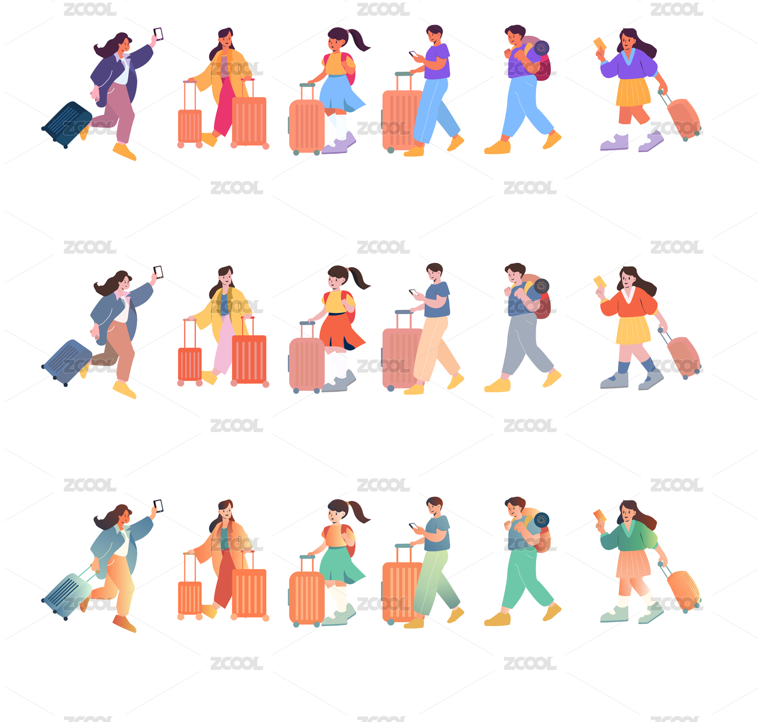 提着行李箱的扁平风人物素材