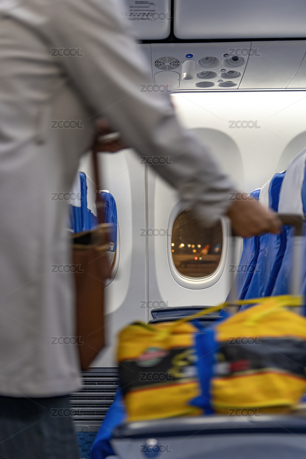 在飞机内部携带行李的乘客