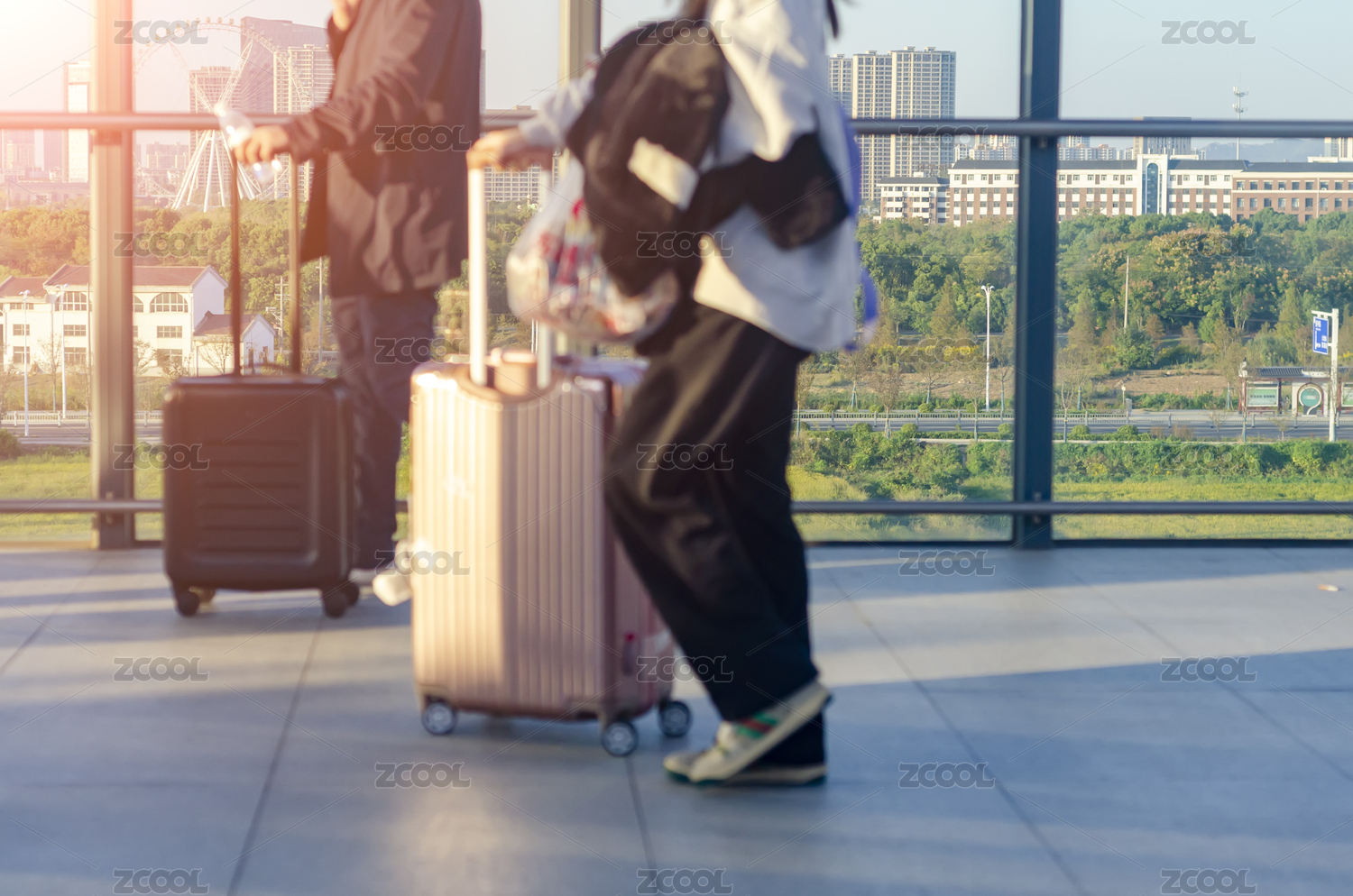 拖着行李箱去旅游